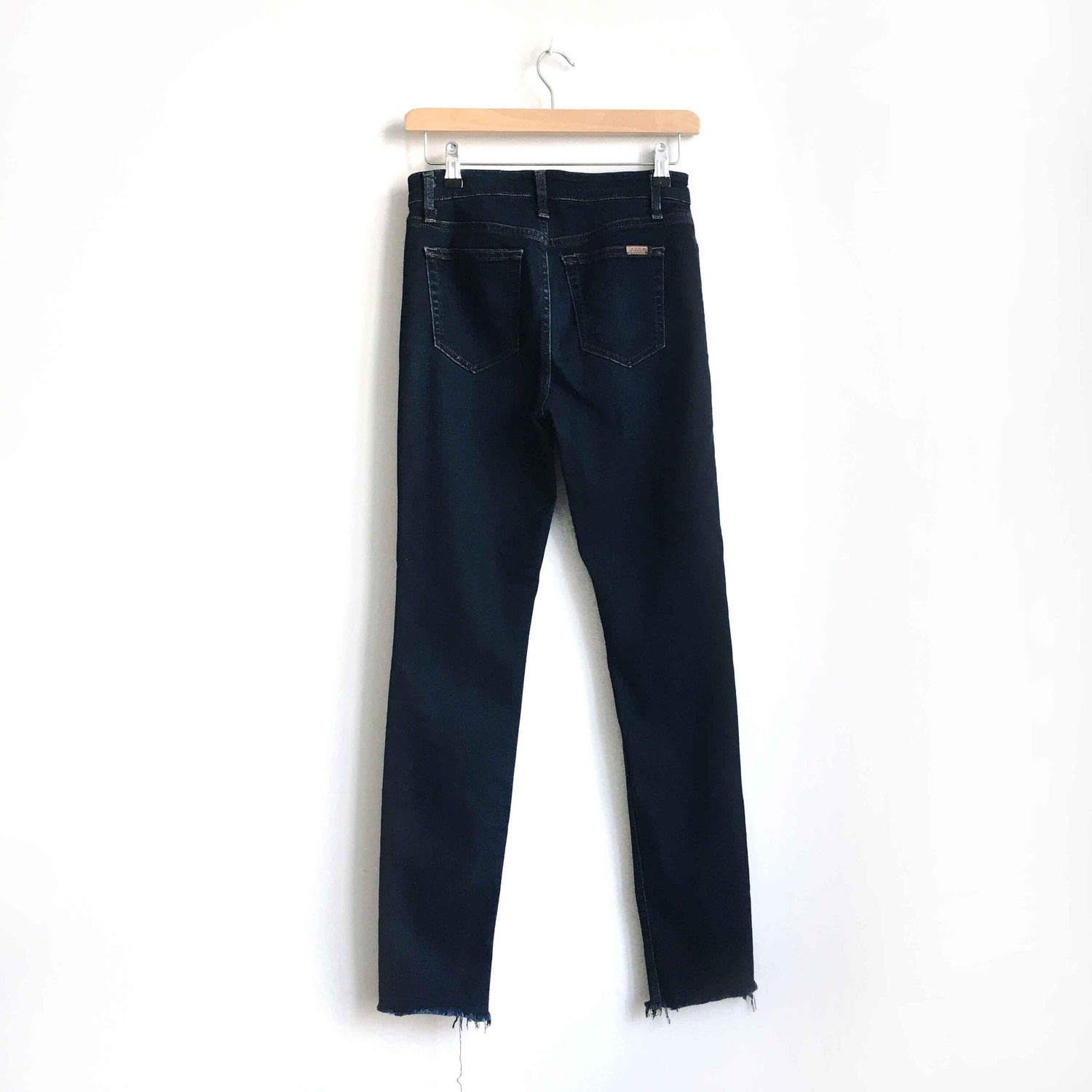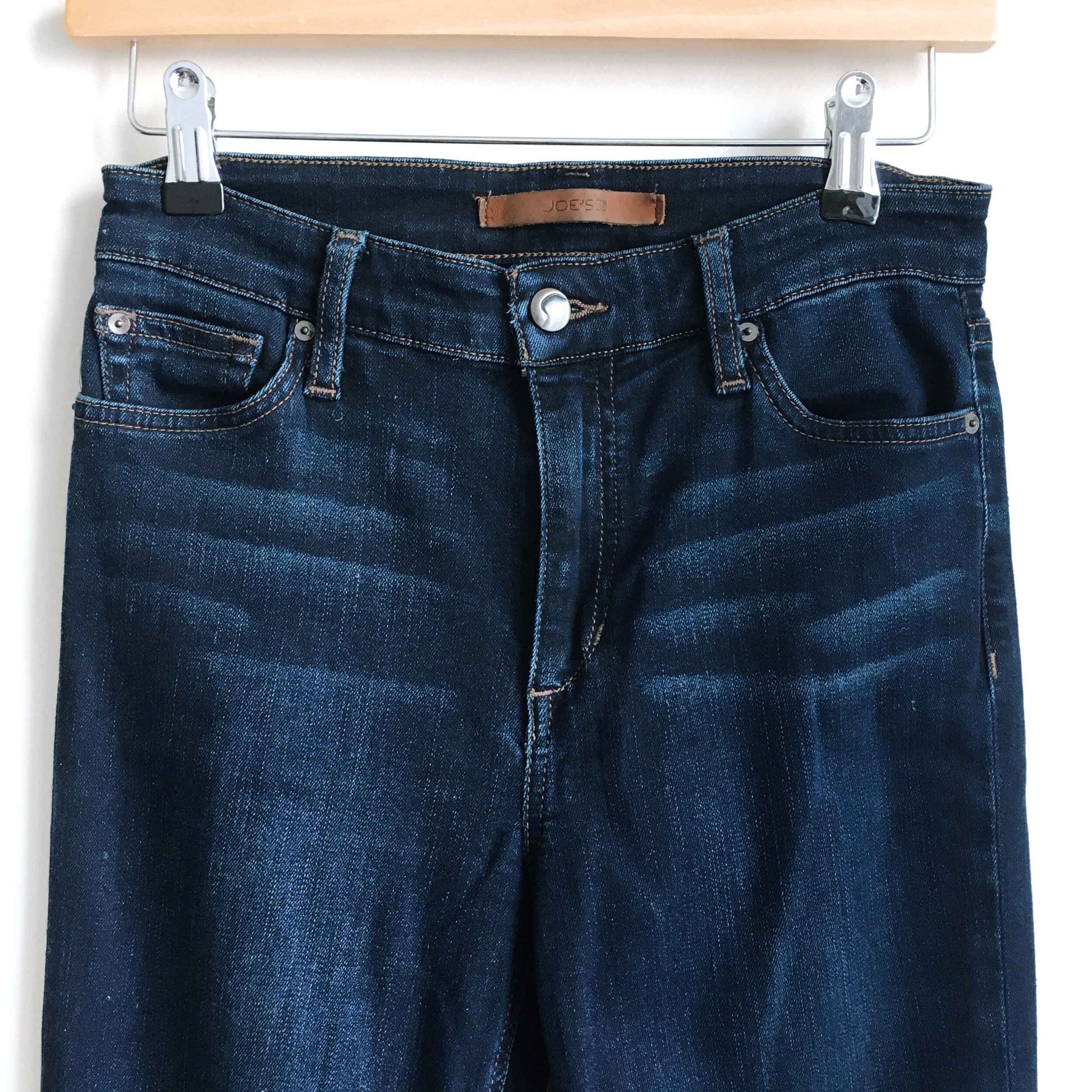 Item Description: These dark wash high rise skinny jeans, the Charlie, from Joe’s Jeans feature slight whiskering and a raw hem. 42% lyocell 27% cotton 15% modal 12% polyester 3% elastane Wash: Flawless
