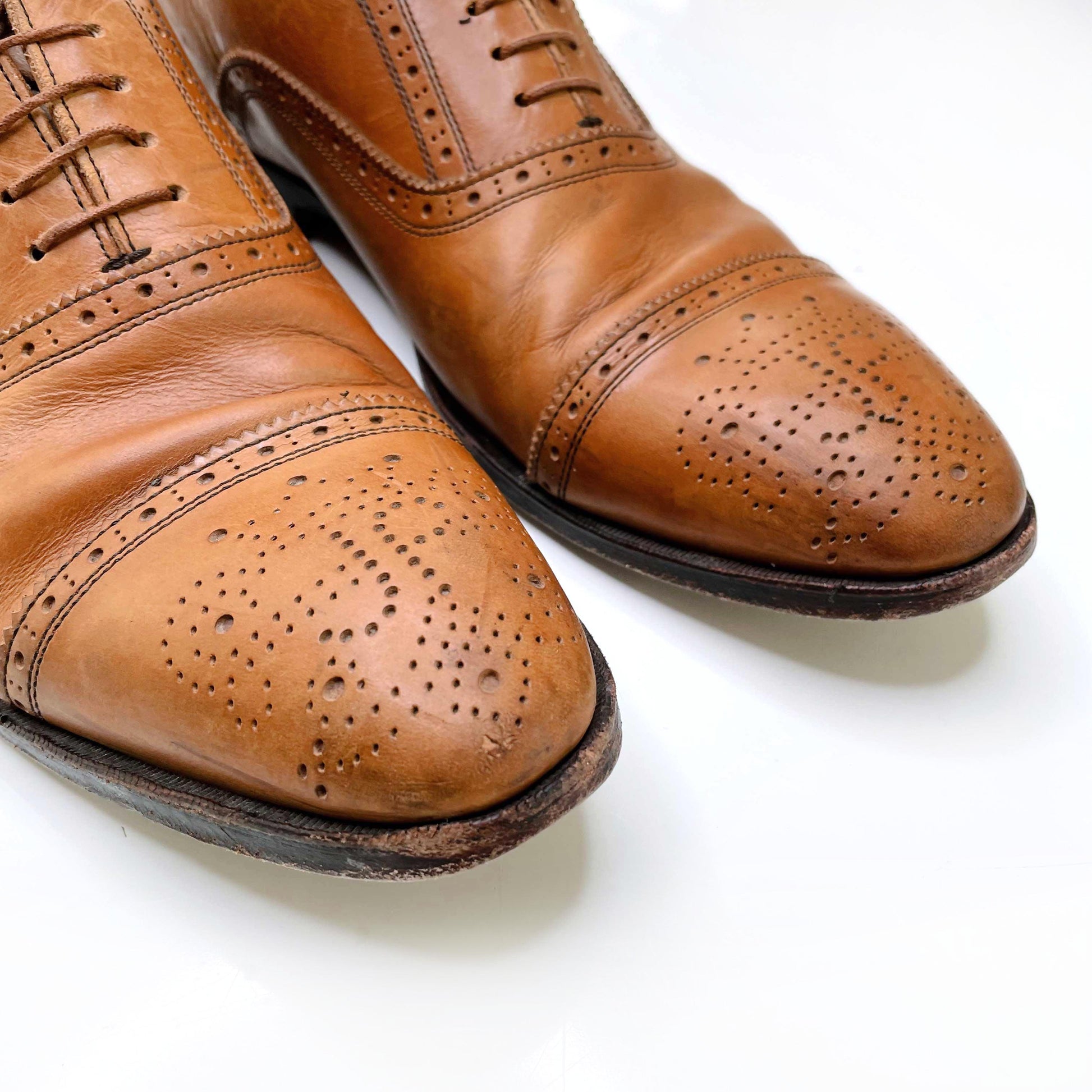 john fluevog men's brown brandenburg classic capped toe brogue dress shoe - size 10.5