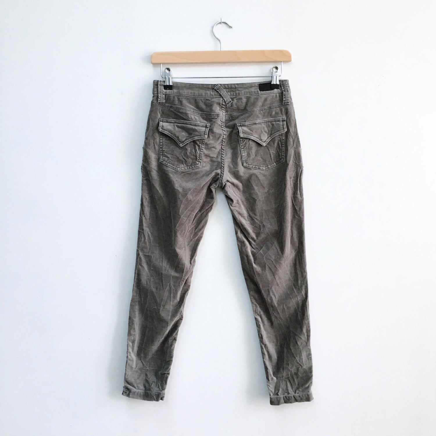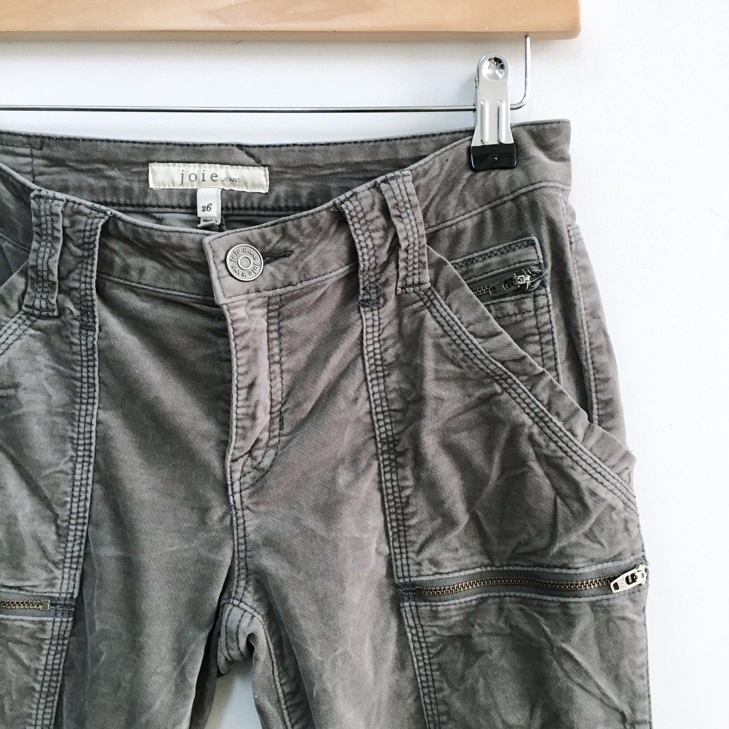 Item Description: Cropped velvet pants from Joie in a curve defining silhouette, front cargo pockets and side zipper cuffs. 98% cotton 2% spandex