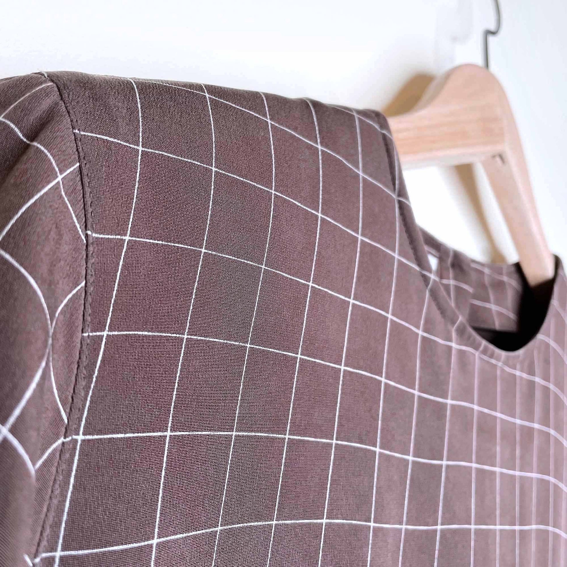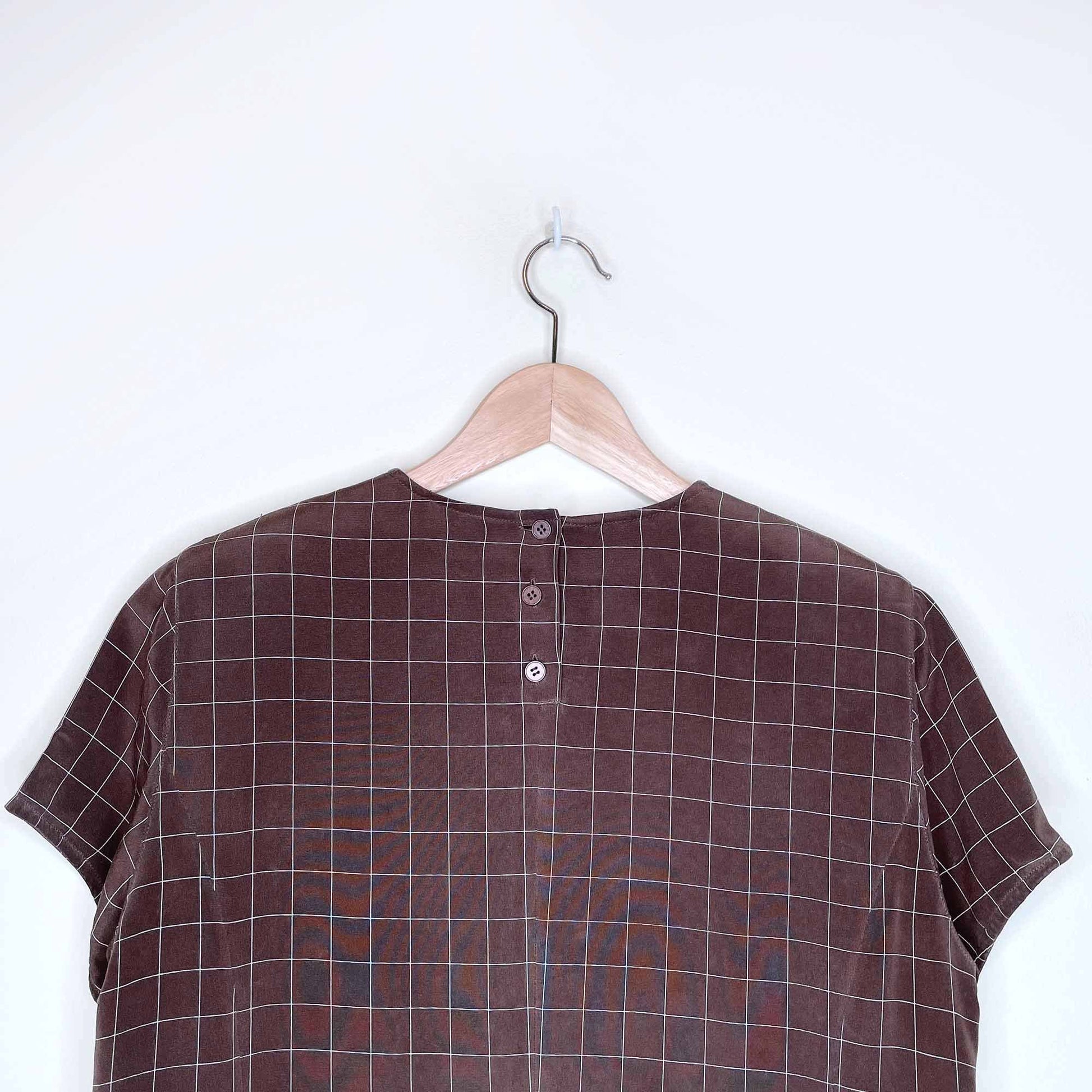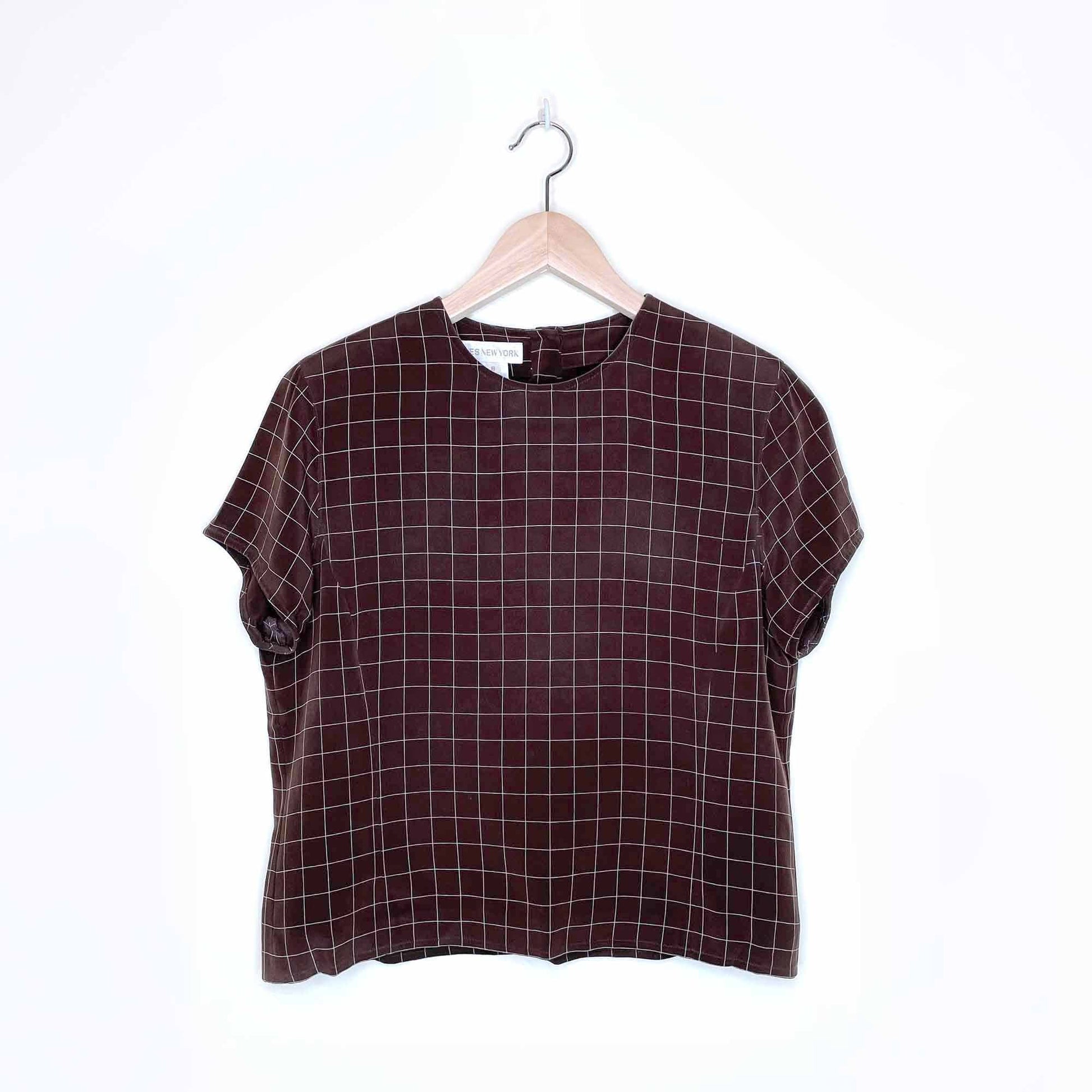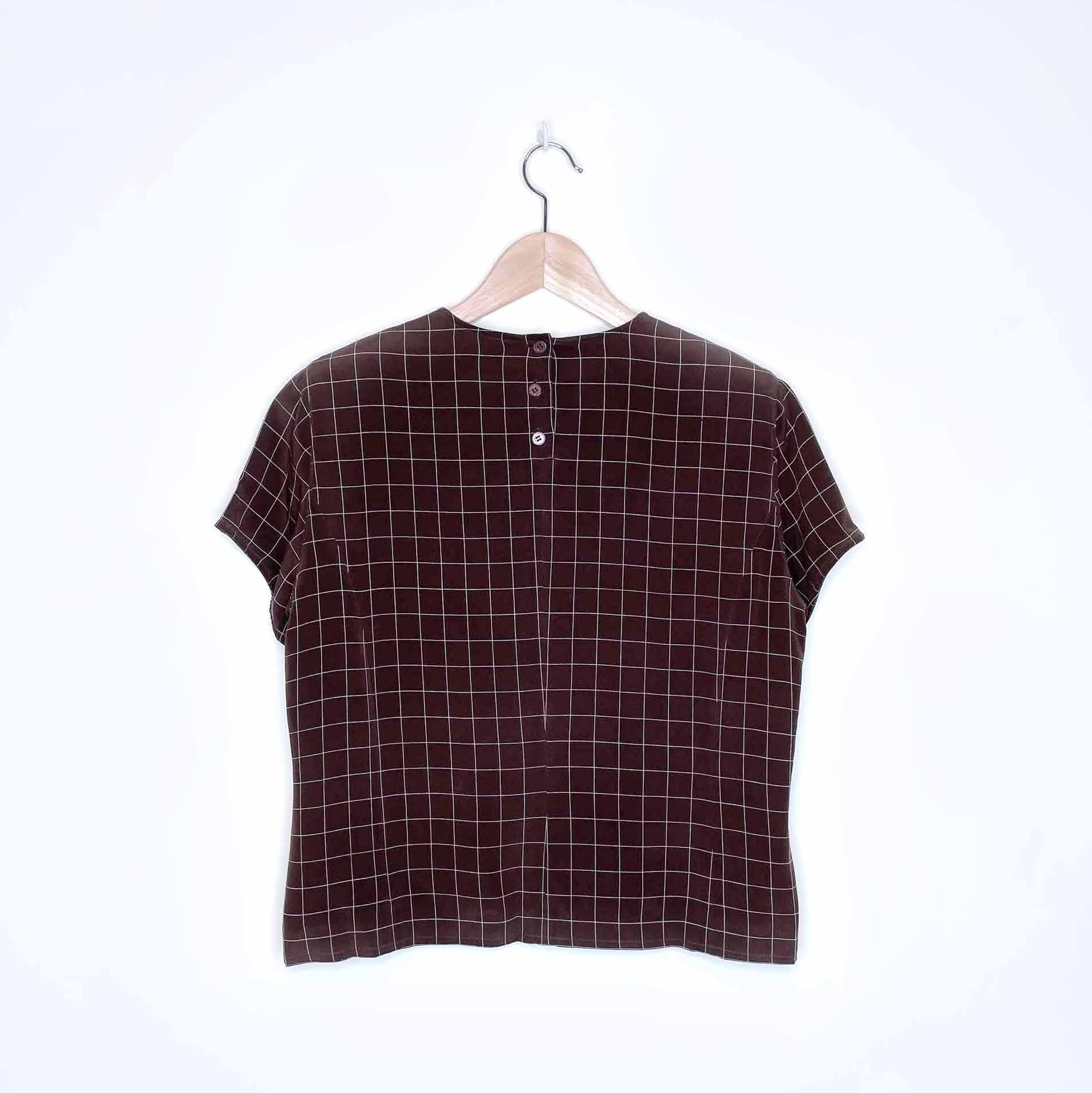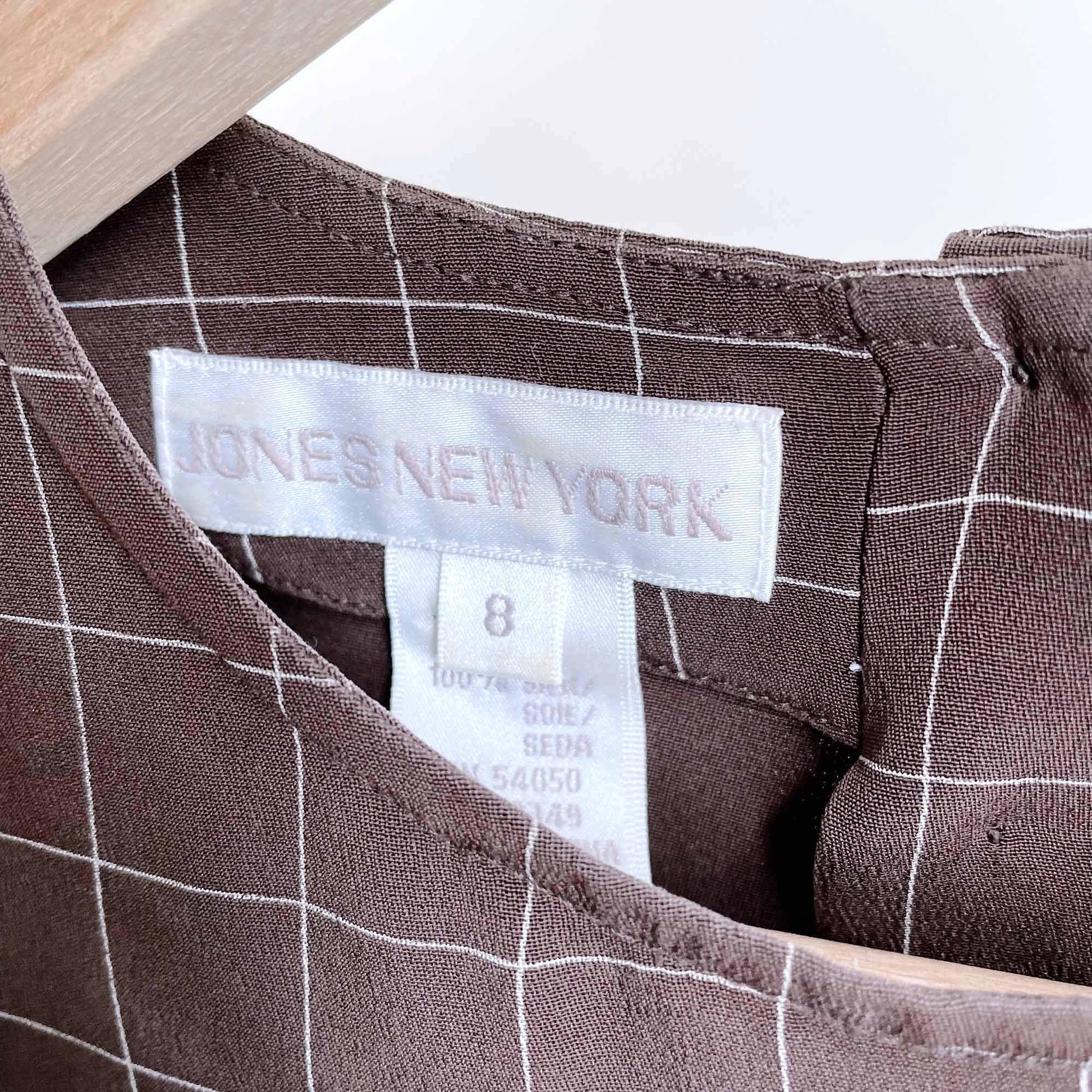 jones new york brown windowpane plaid silk cropped tee - size 8