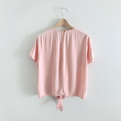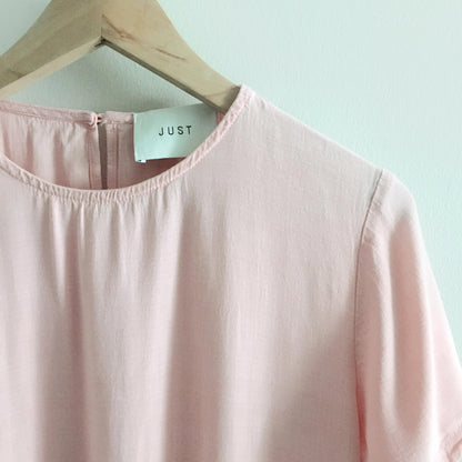 Item Description: A breezy summer t-shirt by Just Female, with tie front detail. The light fabric features a woven style finish. The tie front can be left loosely knotted or gathered in for a shorter crop. 100% viscose
