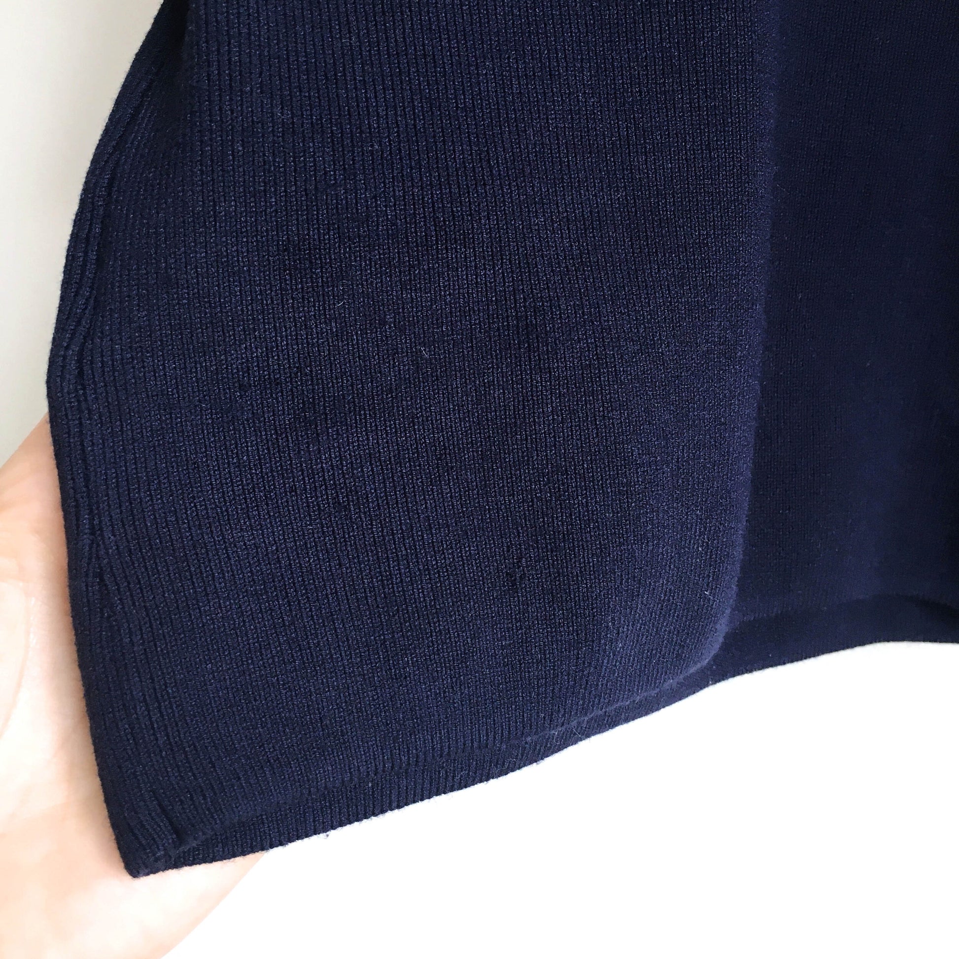 Item Description: This sleeveless navy knit from Anthropologie’s Knitted and Knotted features decadent shoulder ruffles. 88% viscose 11% nylon
