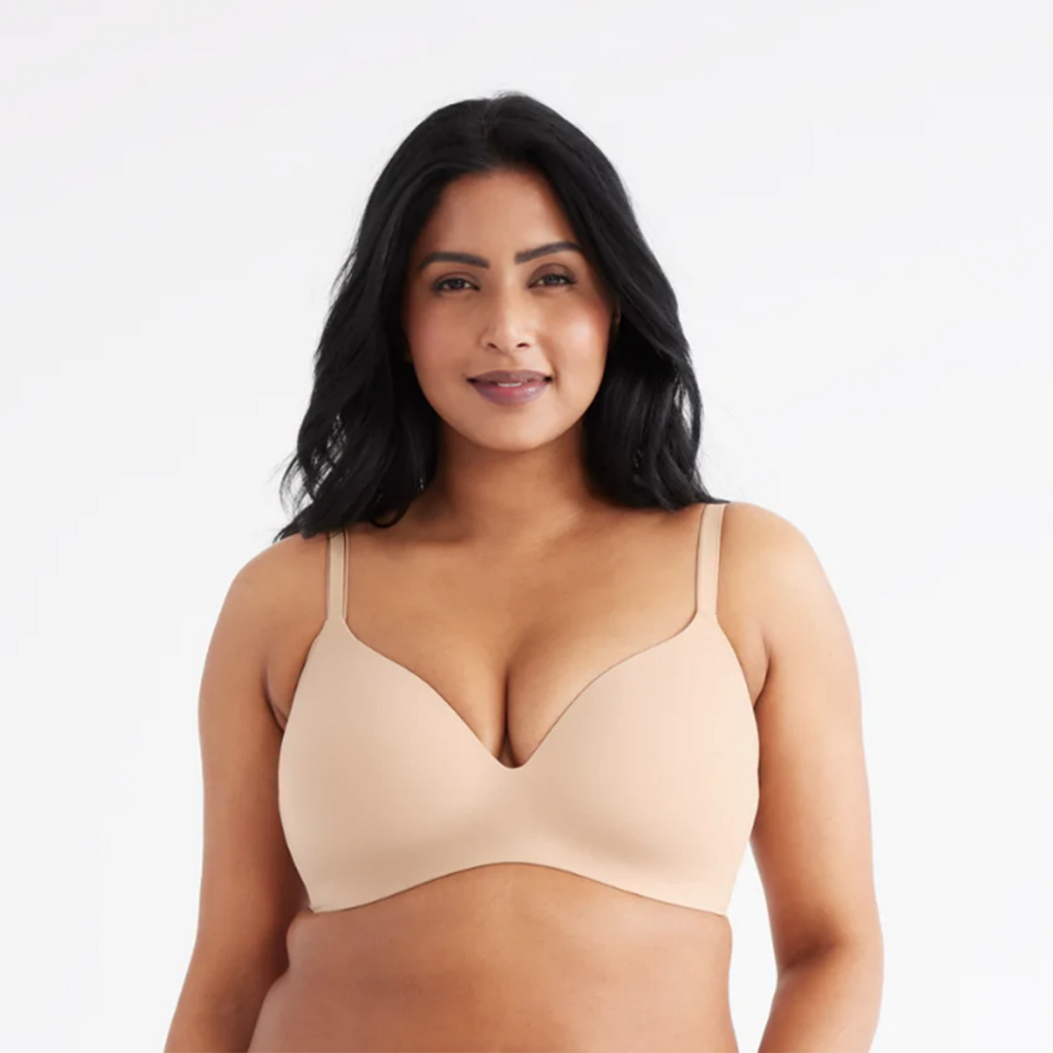 Item Description: The wireless WingWoman Bra features a plunging neckline and molded foam cups give you the most shape and definition of all our bras – without compromising on comfort. Plus, extra side coverage eliminates sideboob and overspill. 72% nylon 28% spandex
