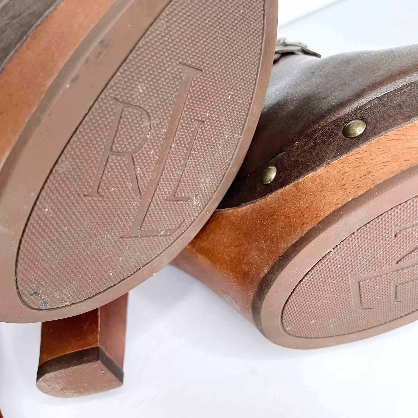 lauren ralph lauren brown leather studded clogs - size 8
