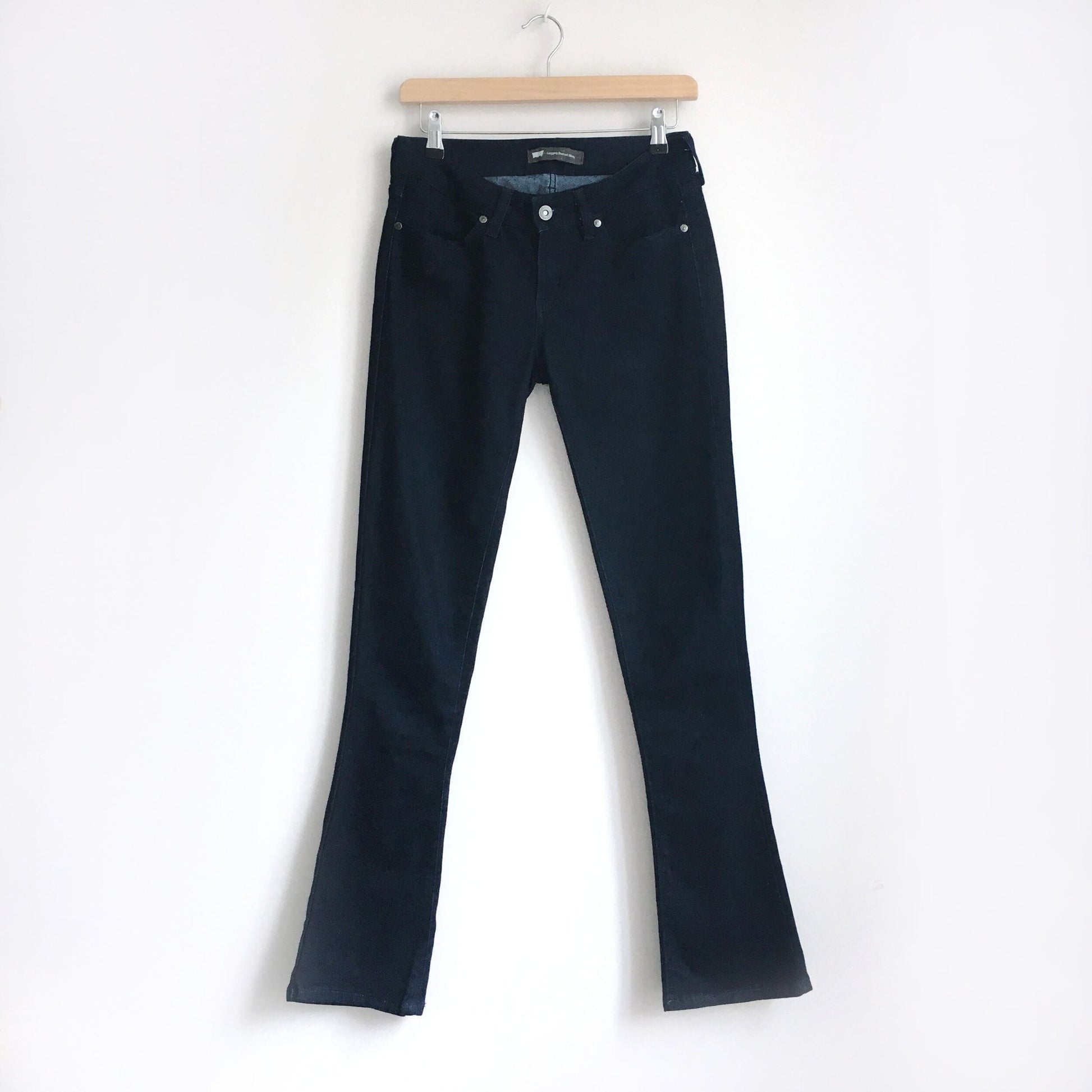 Item Description: These classic dark wash skinnies from Levi’s feature a slimming silhouette, low rise and bootcut flare. 68% cotton 24% polyester 7% viscose 1% elastane