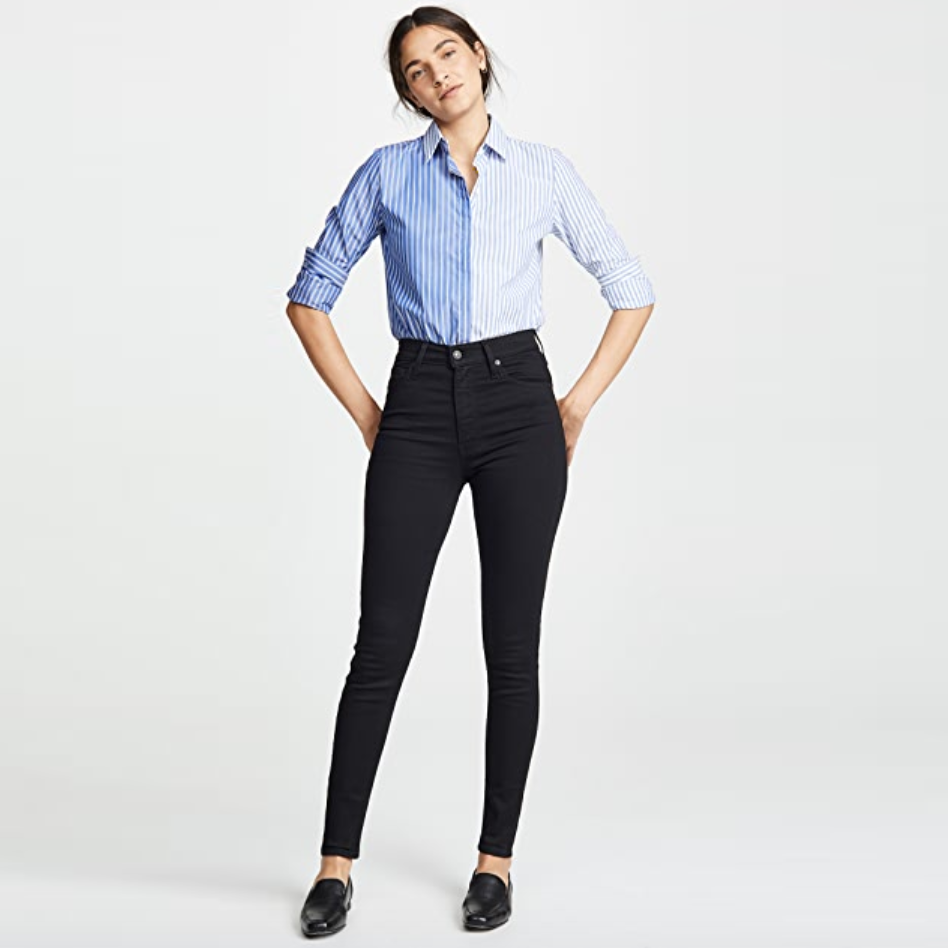 Item Description: With a flattering high-rise and a super-slim fit, these Levi's skinny jeans will make you look like you have legs for days. Plus the inky black wash makes pulling off more polished looks a cinch. Colour: Black galaxy 86% cotton 11% elastomultiester 3% elastane