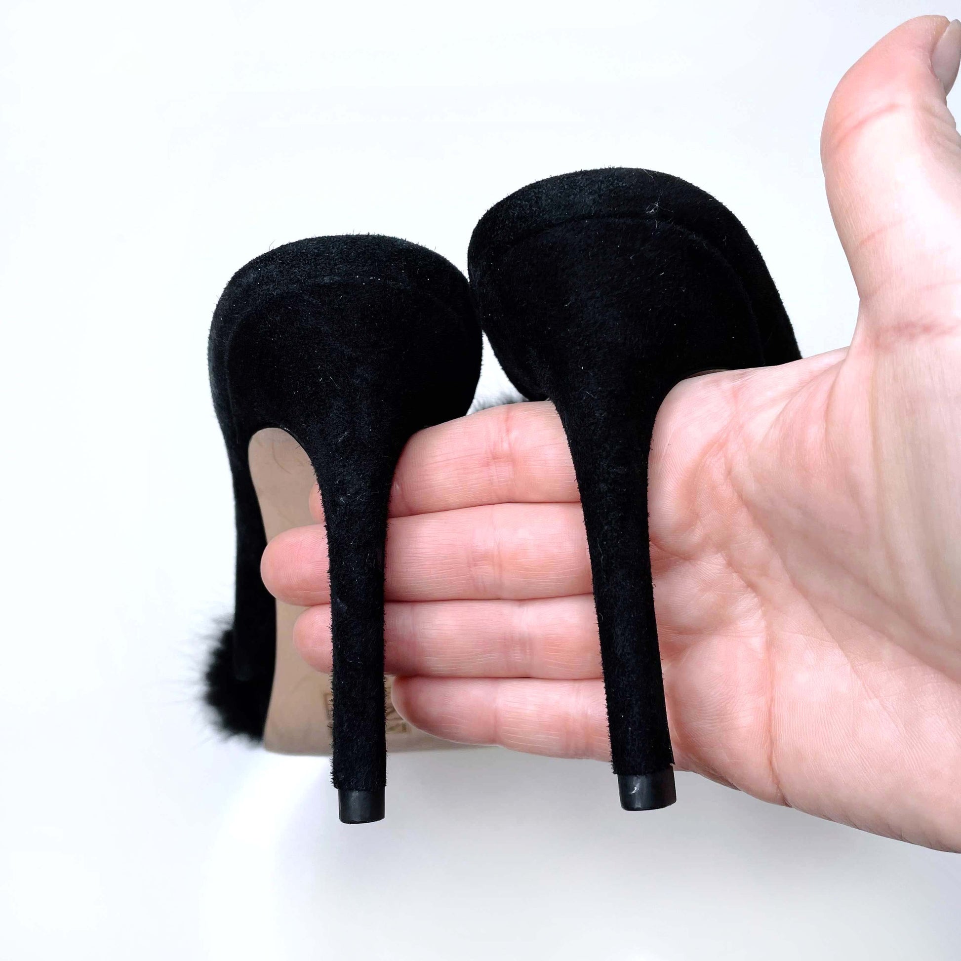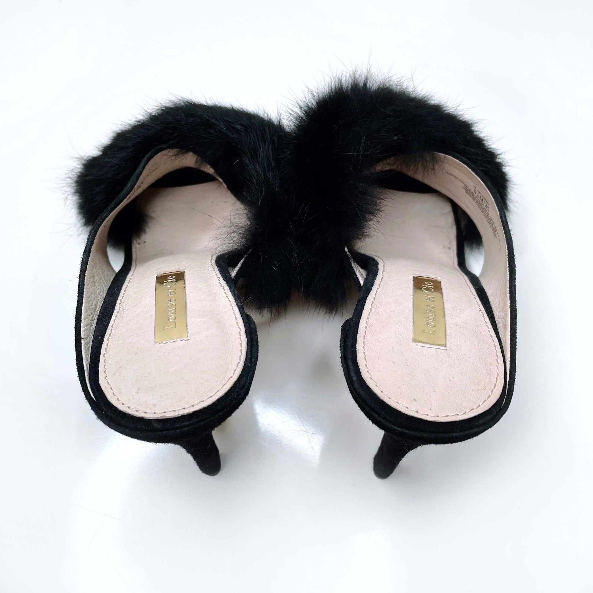 louise et cie black holloway rabbit fur slip on heels - size 8.5