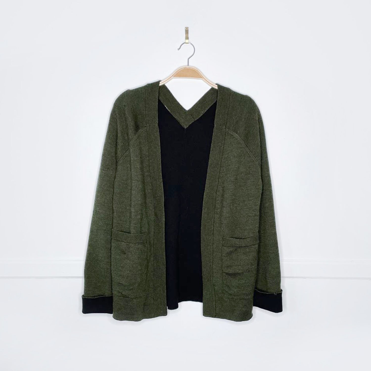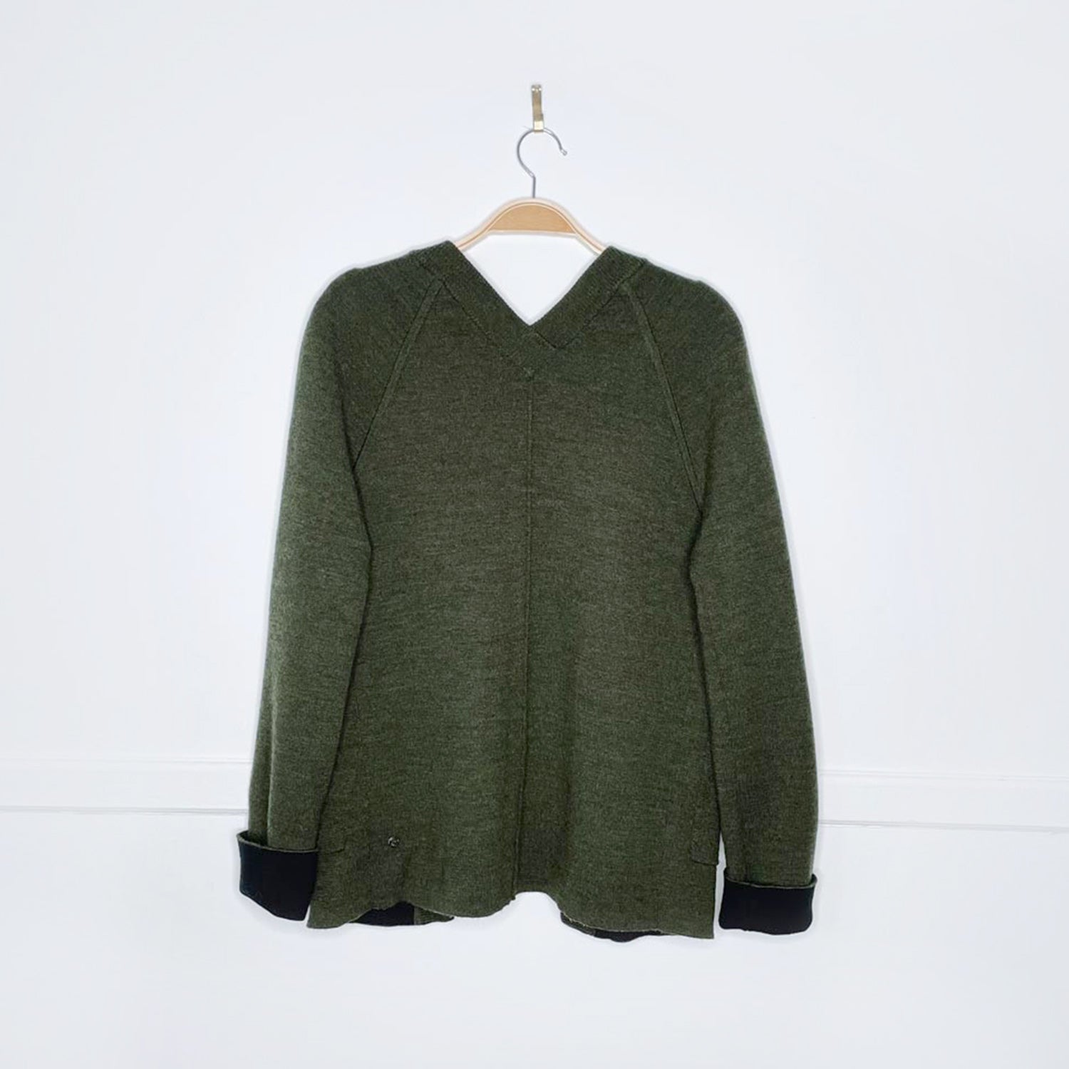 Condition: GOOD - gentle wear under arms and small hole on left shoulder - surface level, doesn't go all the way through, rip on cuff