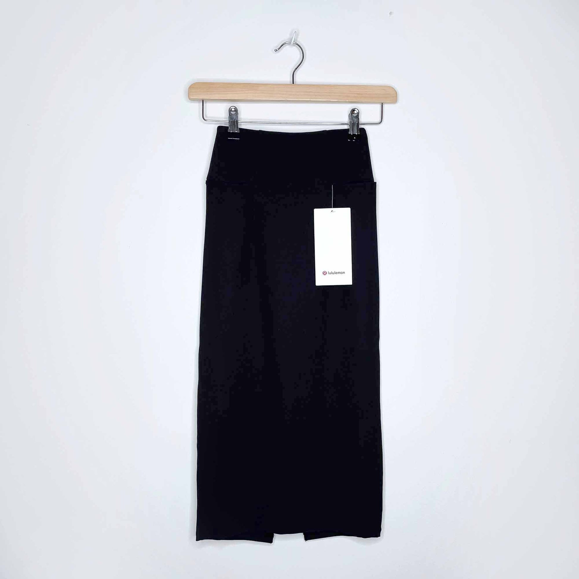 Item Description: Worn above the knee or below, this style of casual skirt slips into the office unnoticed as lulu, with a super high rise ribbed luxtreme and lycra shell, front pockets and back slit. Body: 69% nylon 31% xtra life lycra