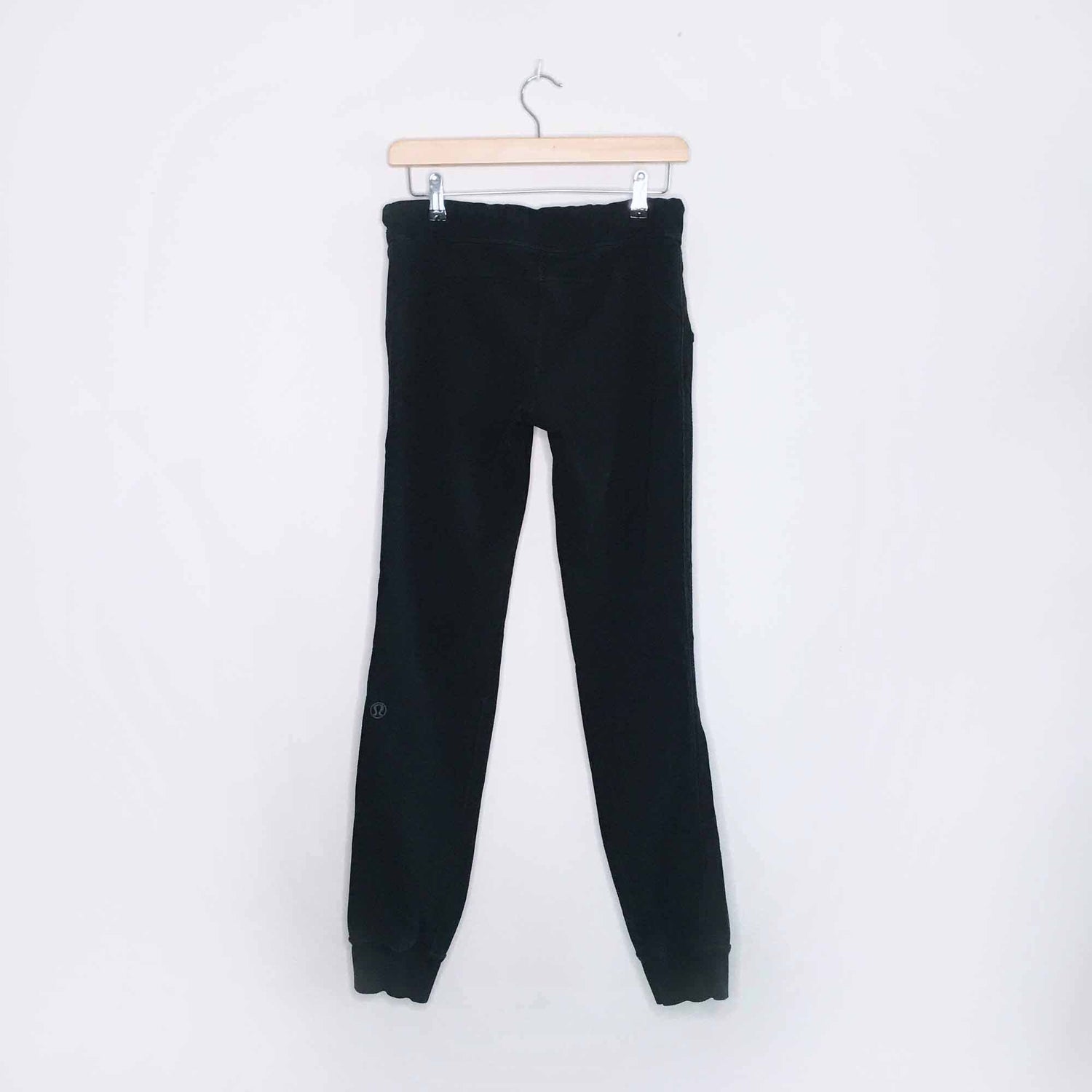 Item Description: These ultra stretchy joggers from lululemon feature a drawstring mid-rise waist with pockets, tapered cuffs and a signature flocked logo on back leg.