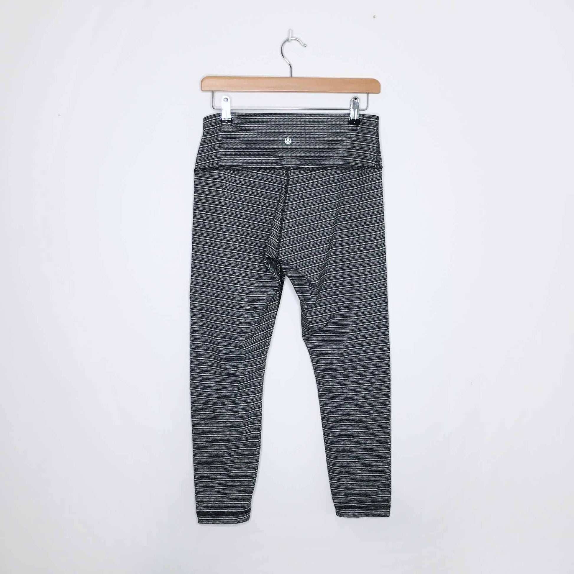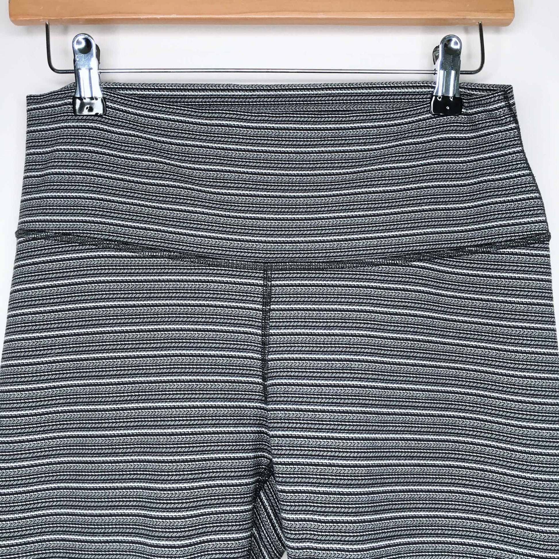 Item Description: These textured stripe wunder under’s from lululemon have a high rise, cropped fit. No content or size tag, but feel soft, and are not the smooth luxtreme material.