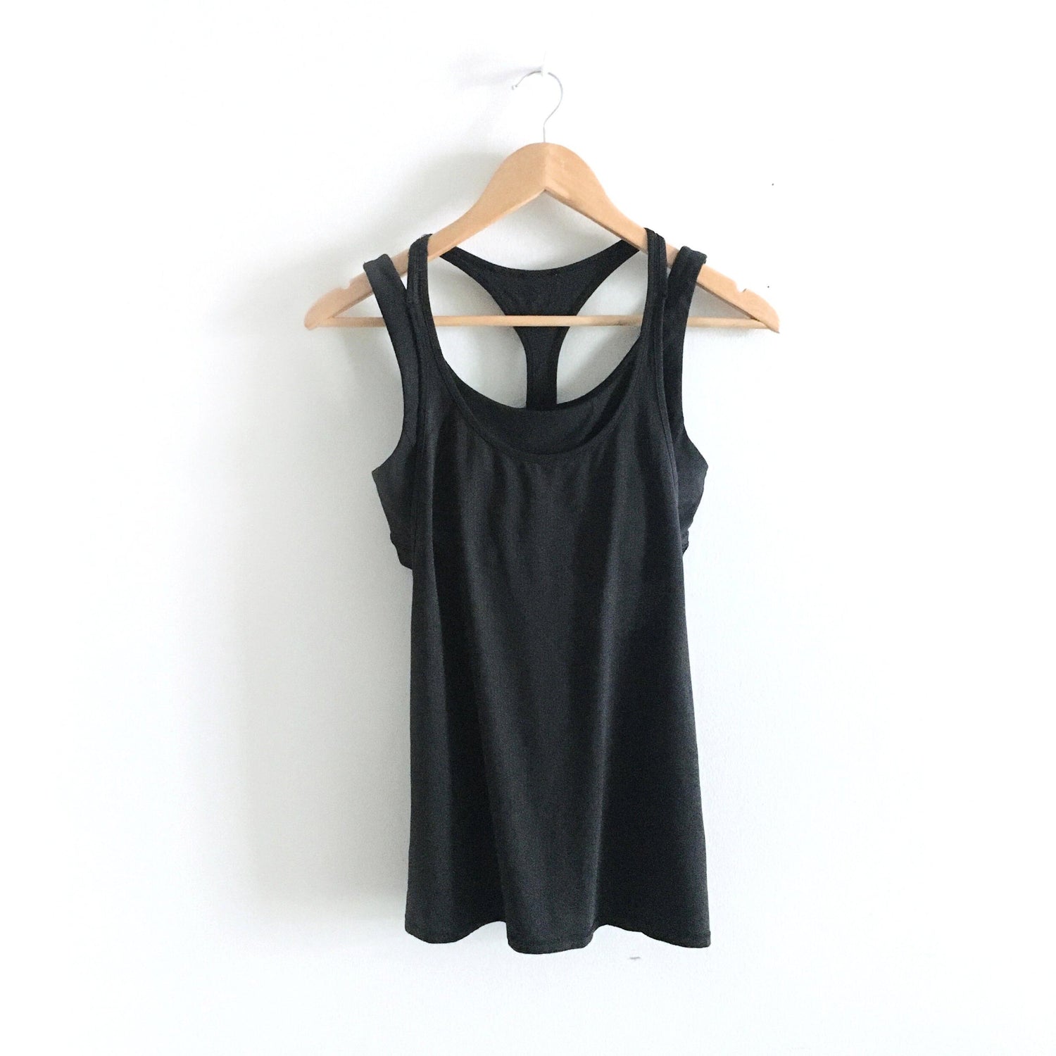 Item Description: A sports bra and racerback tank in one intertwine through a keyhole in the back.