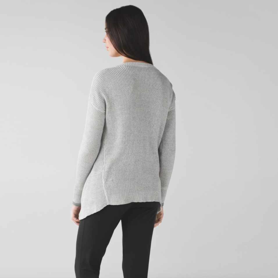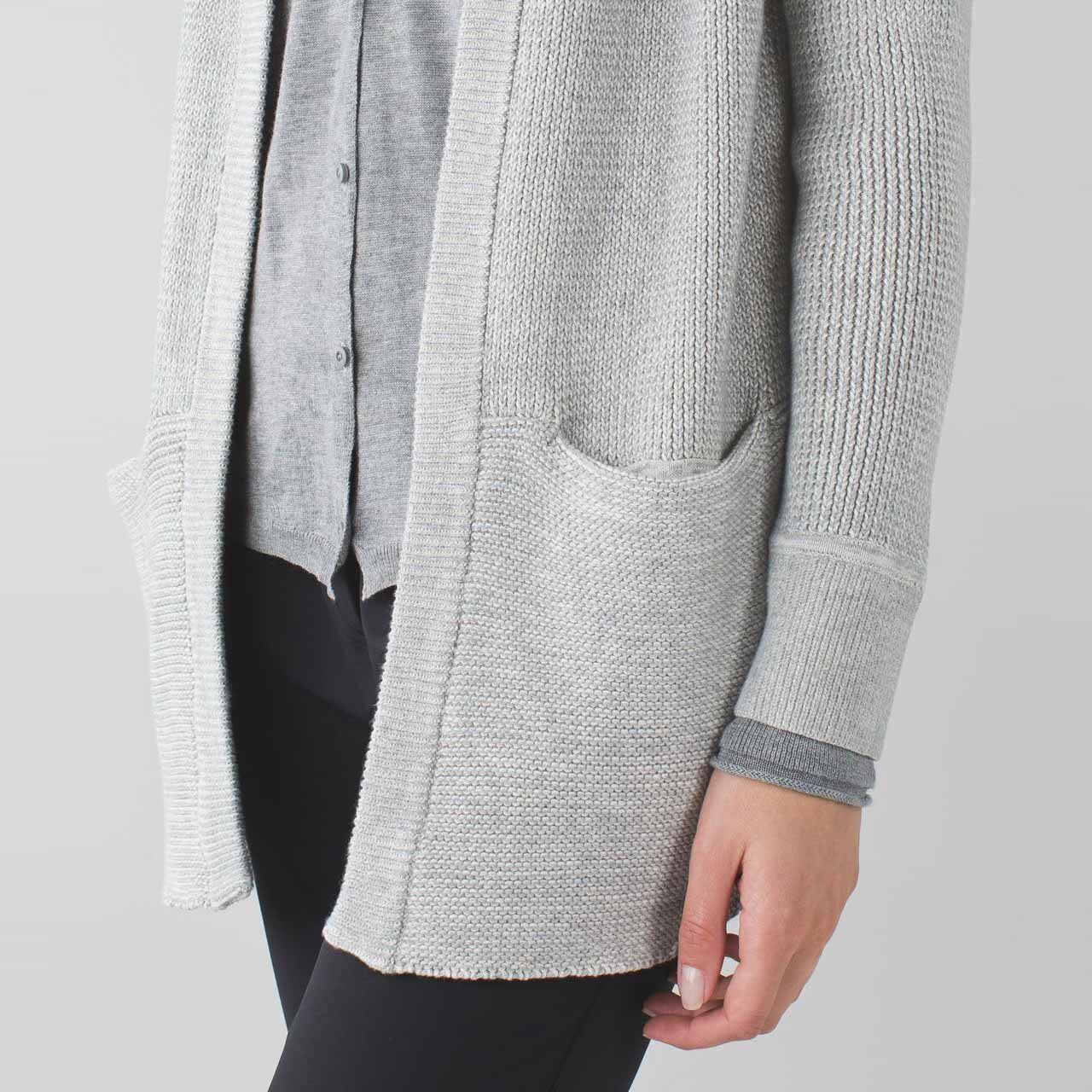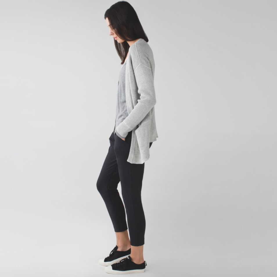Item Description: Who says you have to choose? This sweater combines a vest and a cardigan to be the best of both worlds. A combination of super-soft and breathable fabrics give us room to cool off after class and the long length is easy to layer over our tights. When it comes to post-practice comfort, this vestigan has us covered. Outer layer cotton blend, inner button layer a blend of rayon, tencel and cashmere.