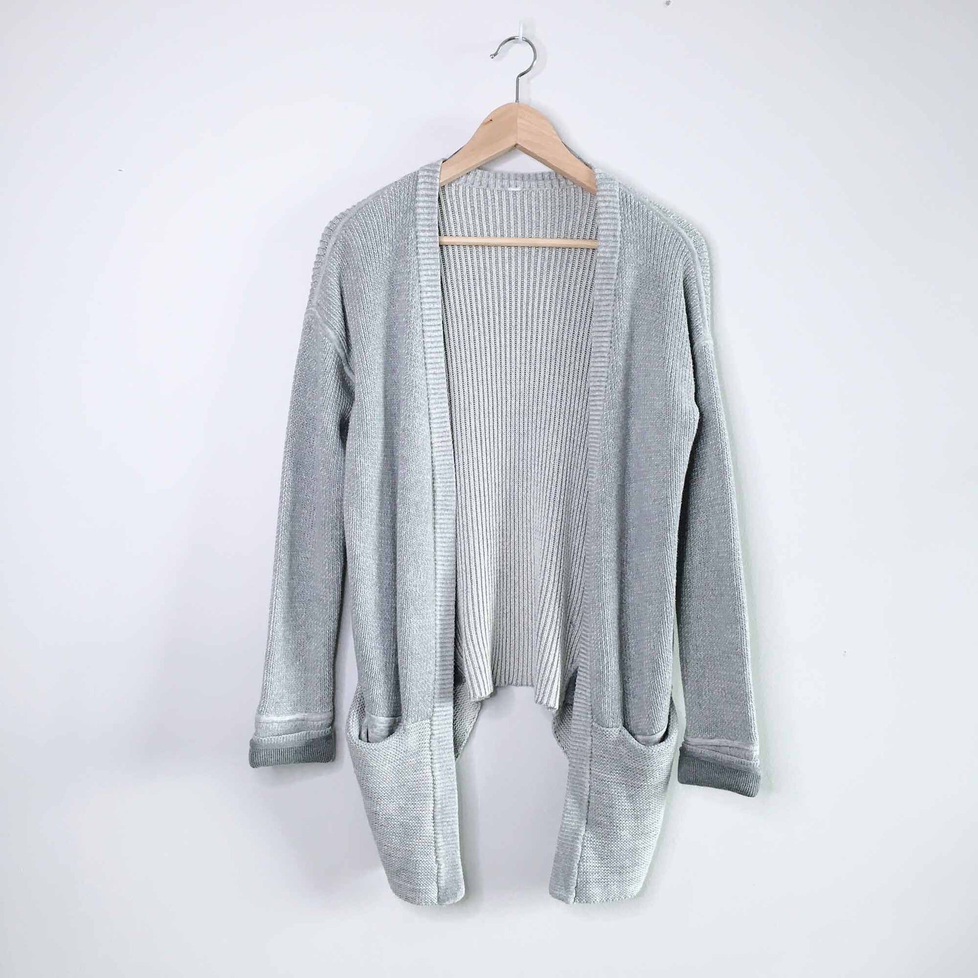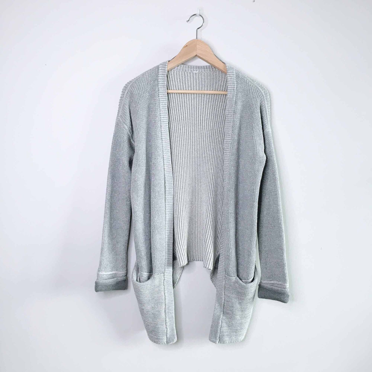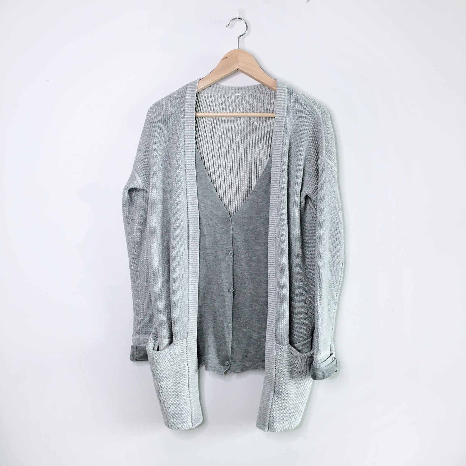 Item Description: Who says you have to choose? This sweater combines a vest and a cardigan to be the best of both worlds. A combination of super-soft and breathable fabrics give us room to cool off after class and the long length is easy to layer over our tights. When it comes to post-practice comfort, this vestigan has us covered. Outer layer cotton blend, inner button layer a blend of rayon, tencel and cashmere.
