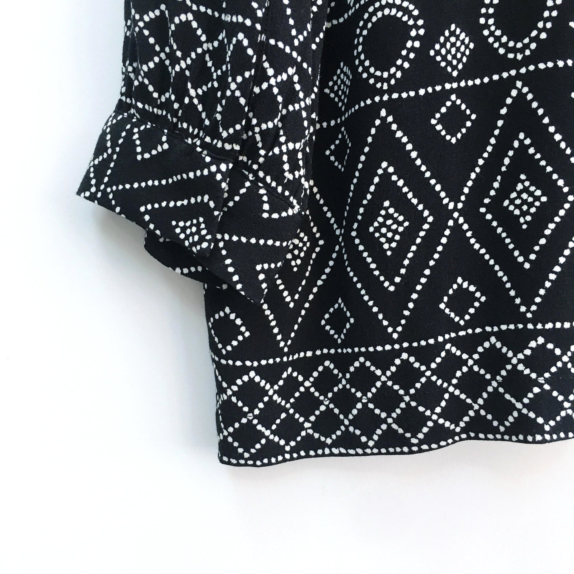 Item Description: A printed, lightweight oversized Madewell blouse with a split neckline and lace-up detailing and tassel ends. 100% viscose