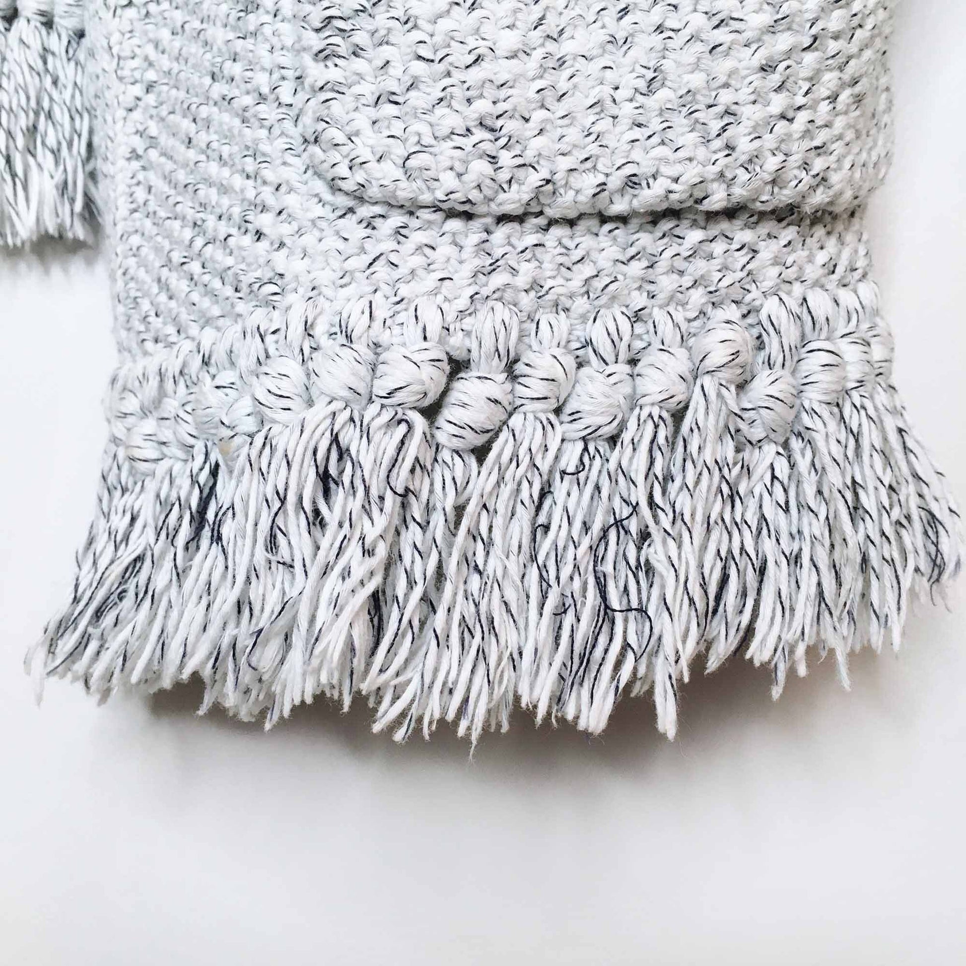 Item Description: A toss-on marled cardigan in a cotton knit that drapes (and layers) like a dream. Cuffed sleeves and hand-applied fringe make this sweater a design-team favourite. 100% cotton