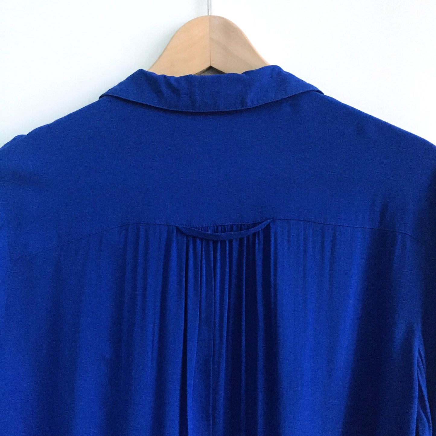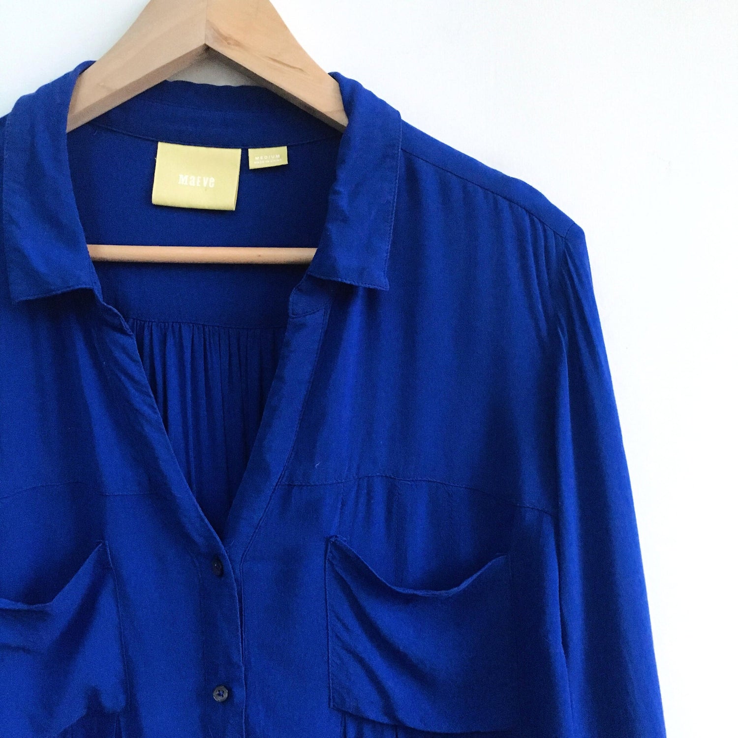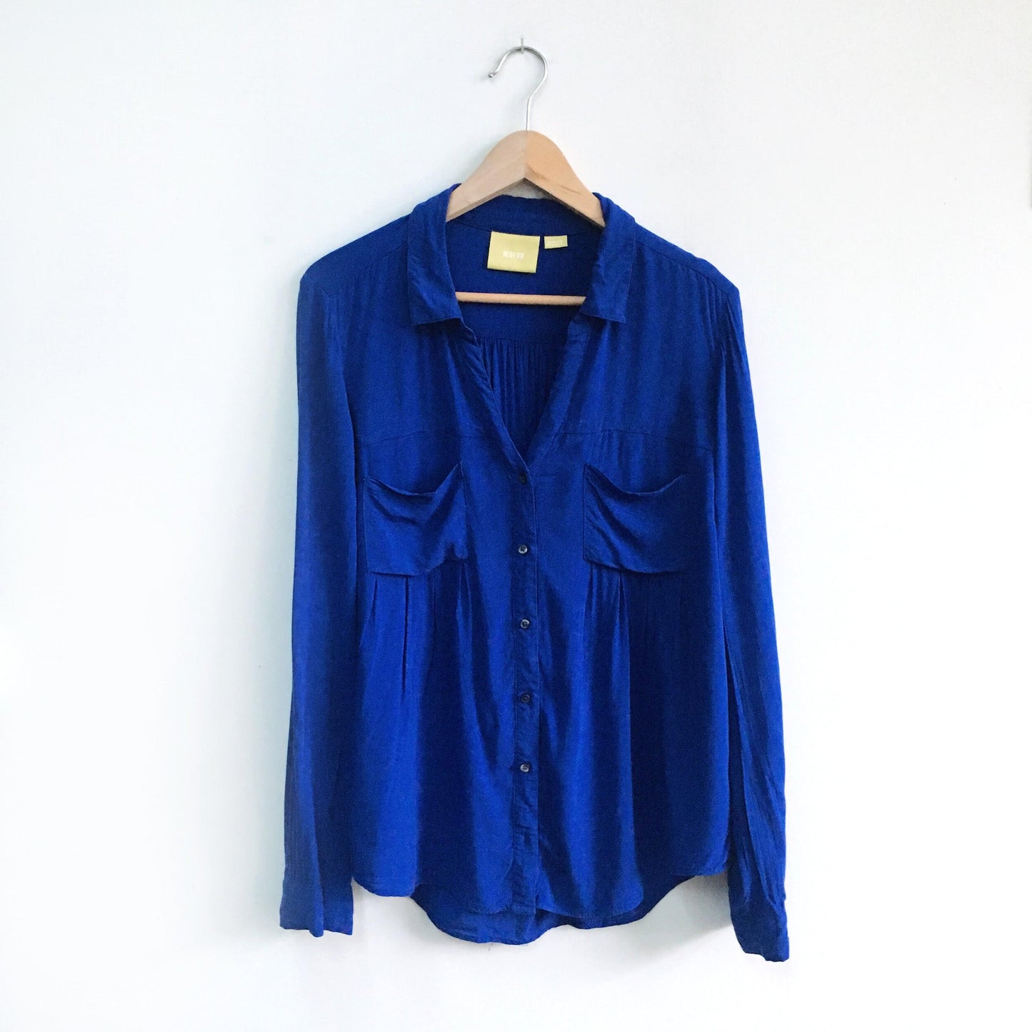 Item Description: A soft and flowy blouse, this beauty from Anthropologie features front pintuck pockets and button cuffs. 100% rayon