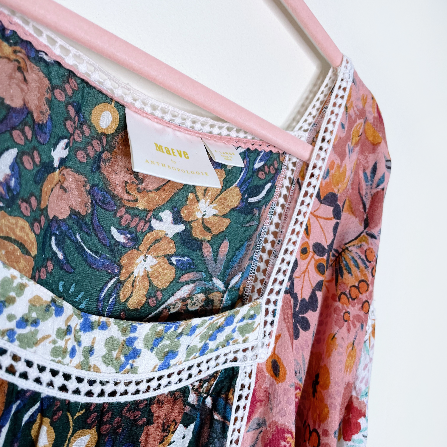 maeve nikki square neck floral crochet boho blouse - size xl