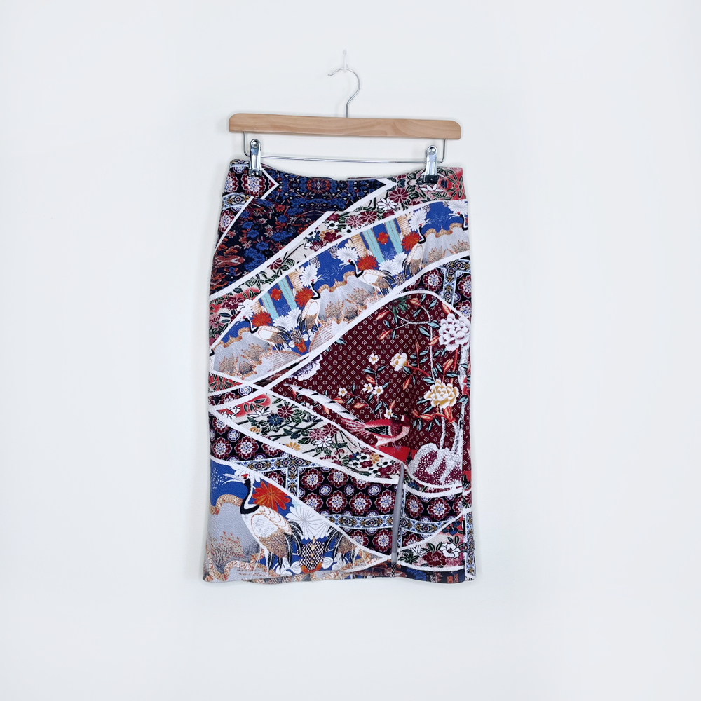 maeve vianna stretch knit asian crane pencil skirt - size medium