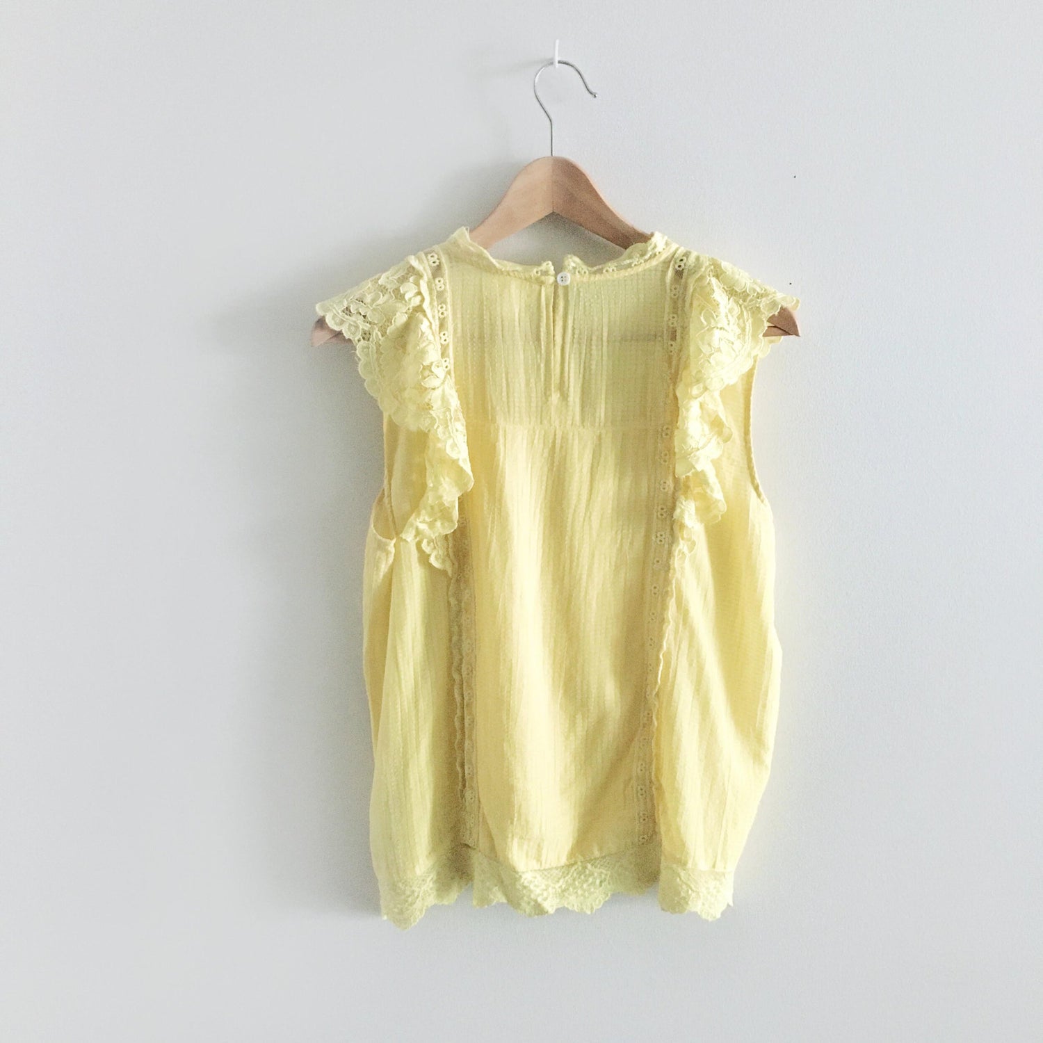 Item Description: Give this Victorian-inspired blouse a contemporary spin by styling it with a leather skirt and sleek heels. Or tuck into culottes and a hat for a walk on the beach. 70% viscose 30% cotton