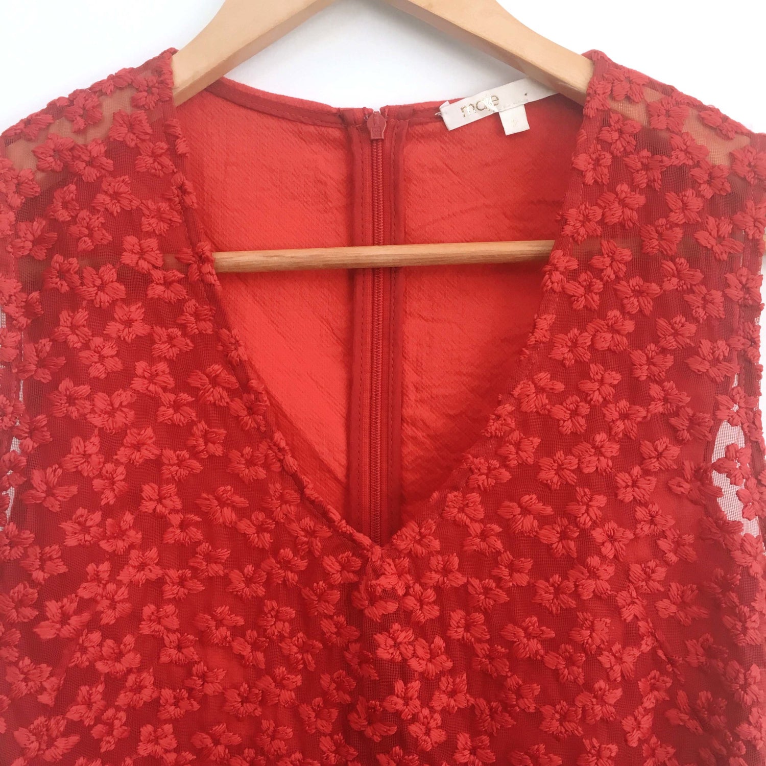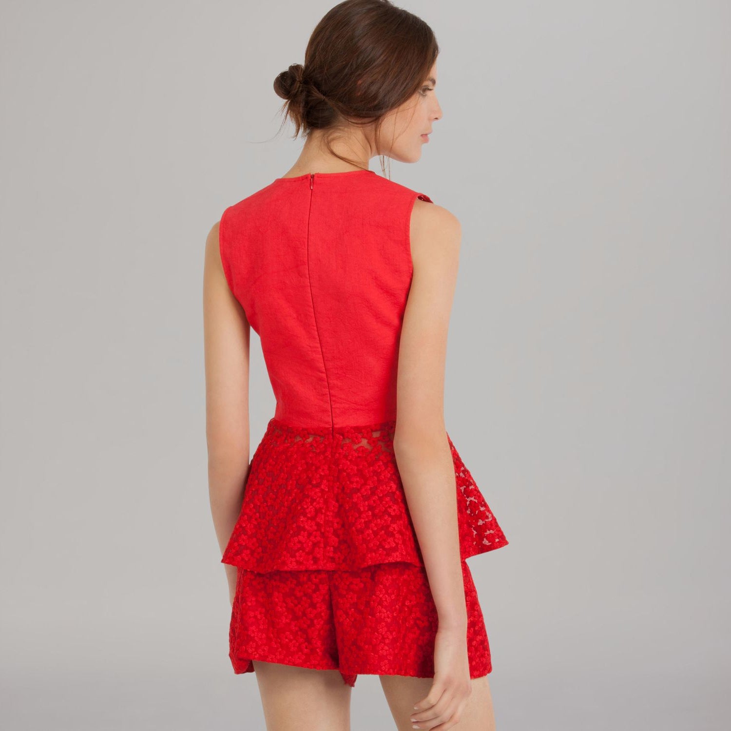 Item Description: Gosh, so pretty. This structured lace peplum top is all that va-va-vooms! Dress up with a red poof midi skirt or scandalous with black pleather tights. Either way, this top is a knockout. Zipper back.