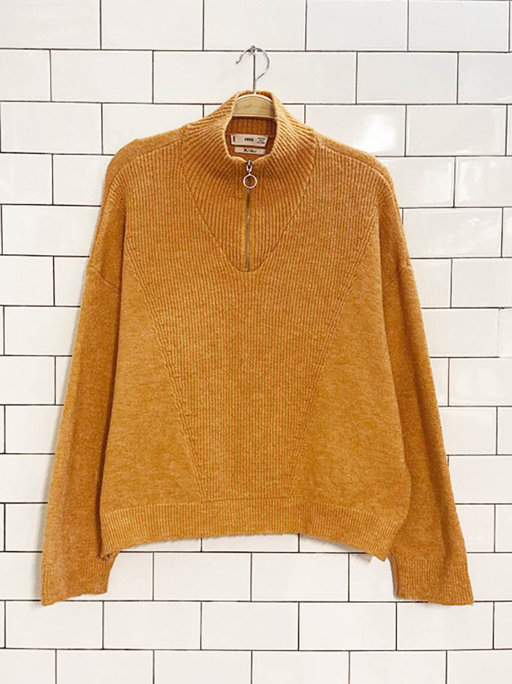 mango wool-blend 1/2 zip ribbed knit sweater