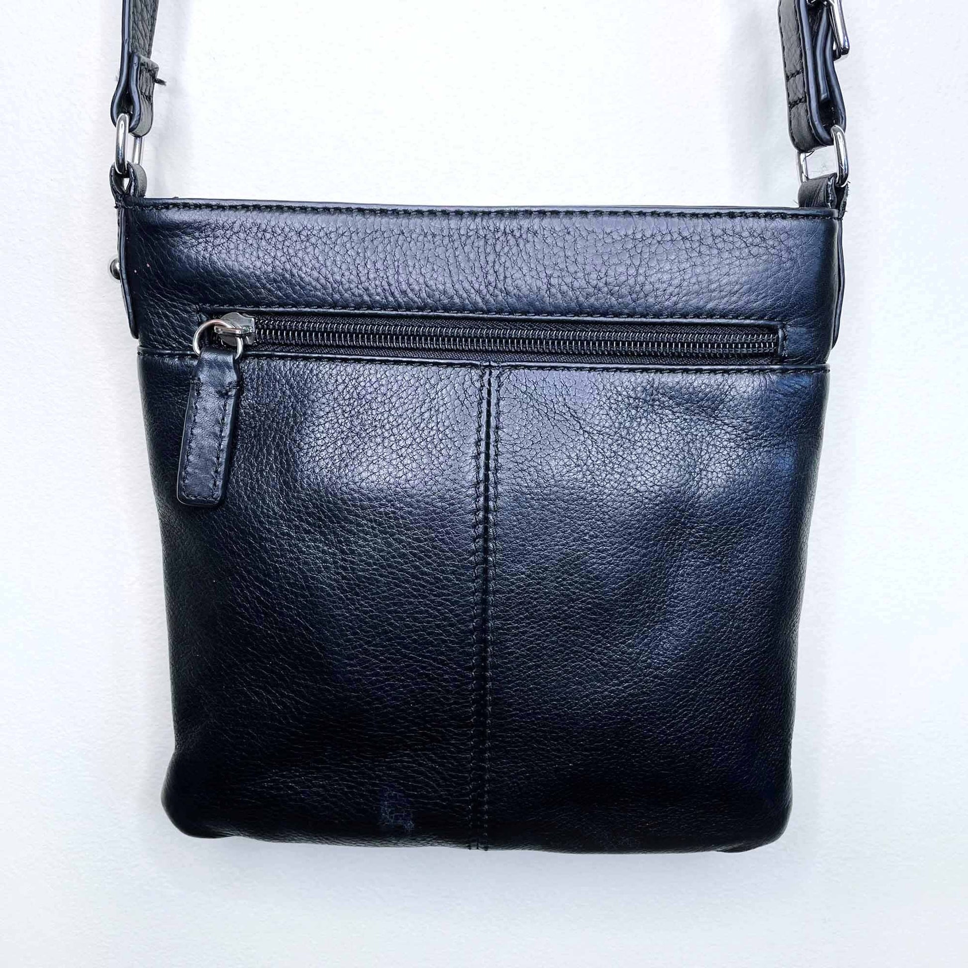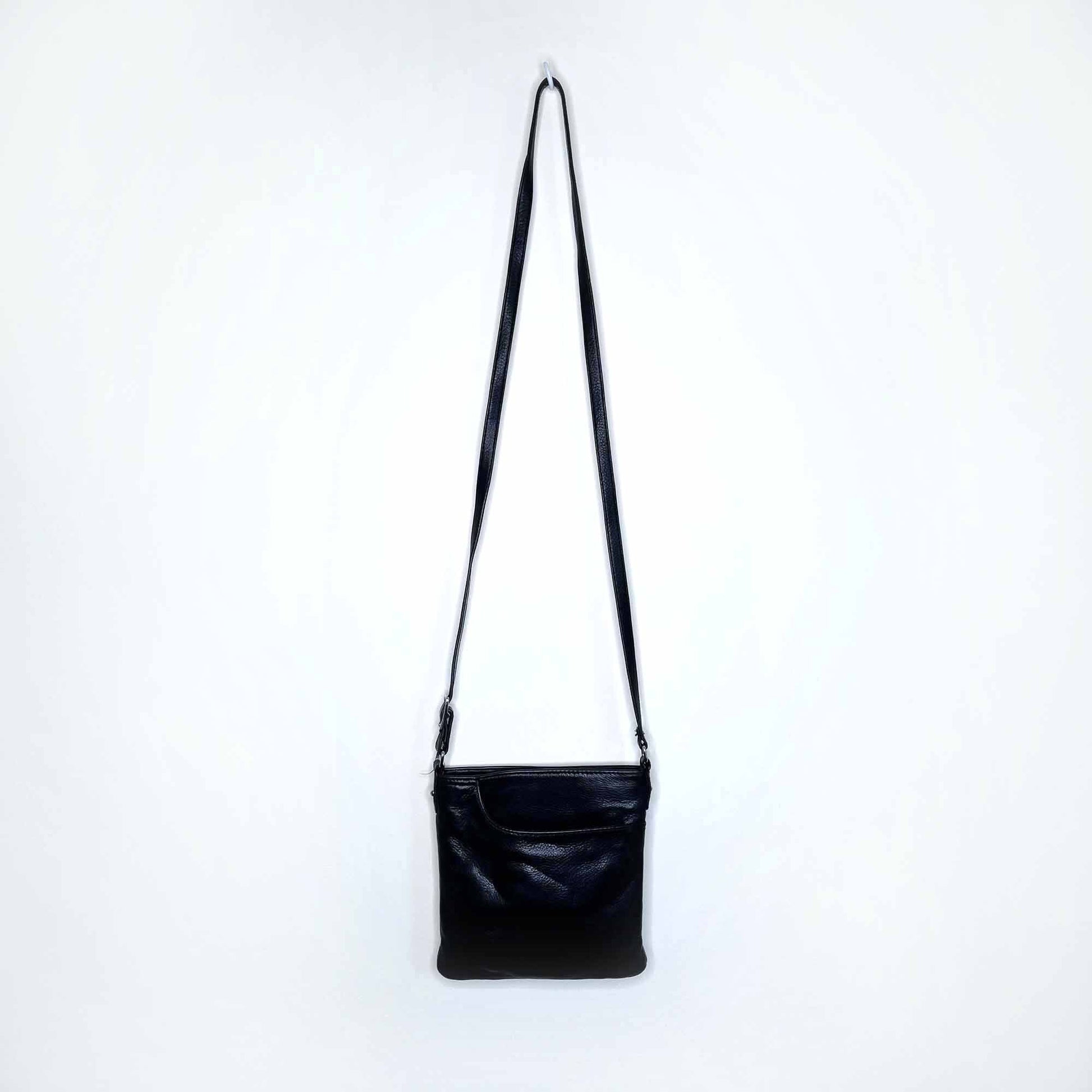 Item Description: This soft pebbled leather crossbody from Margot features a simple silhouette with offset front pocket and multiple zip pockets.
