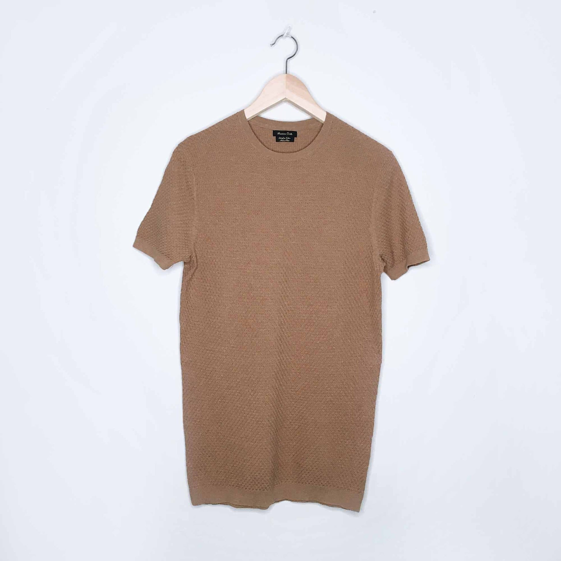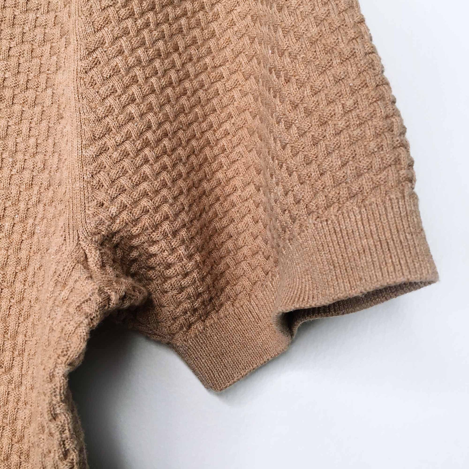Massimo Dutti short sleeve camel knit sweater - size Medium