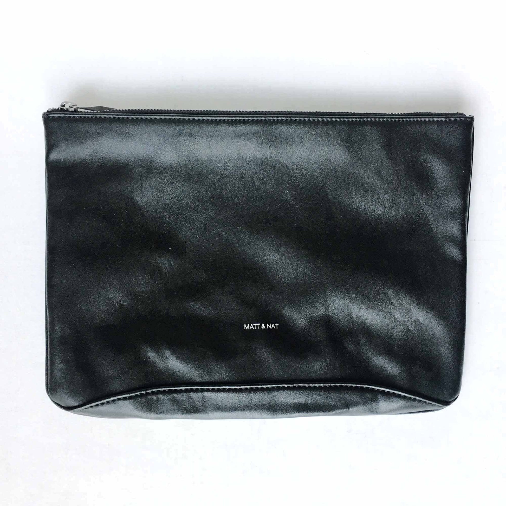 Item Description: This sleek back vegan leather laptop/tablet sleeve from Matt & Nat features a zipper closure and back loop for whatever use your heart desires!