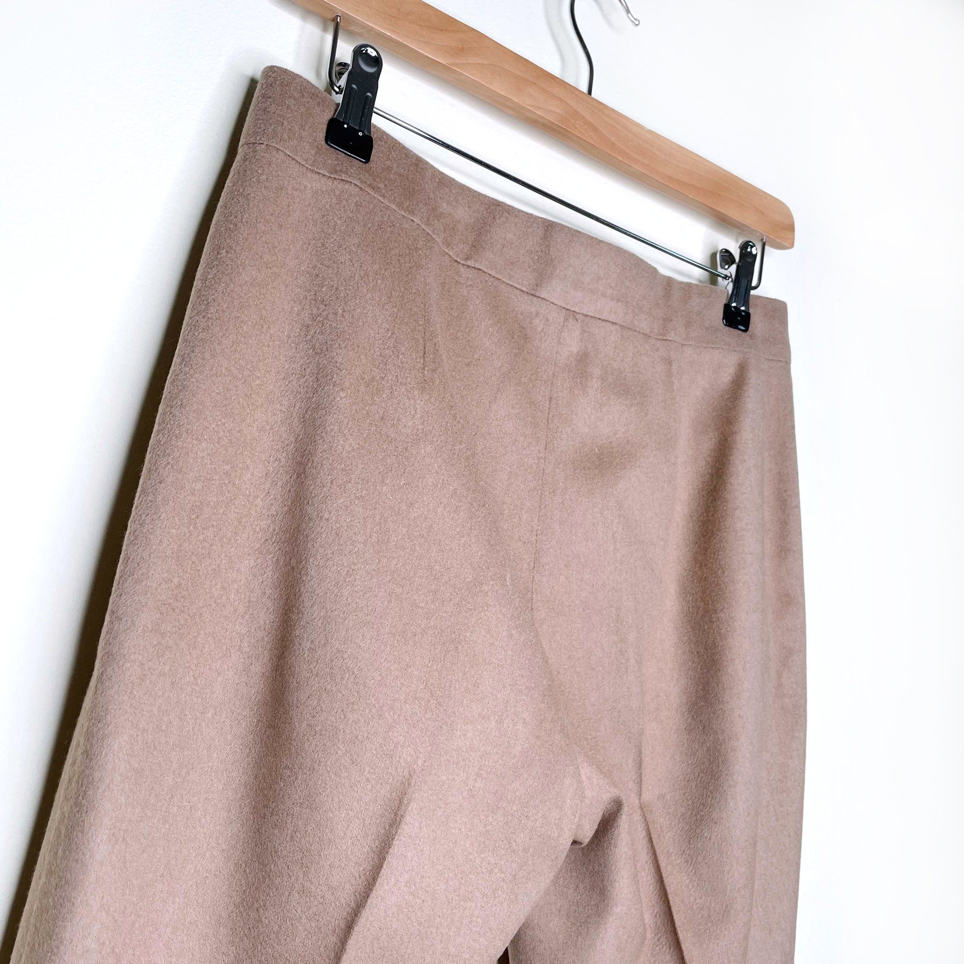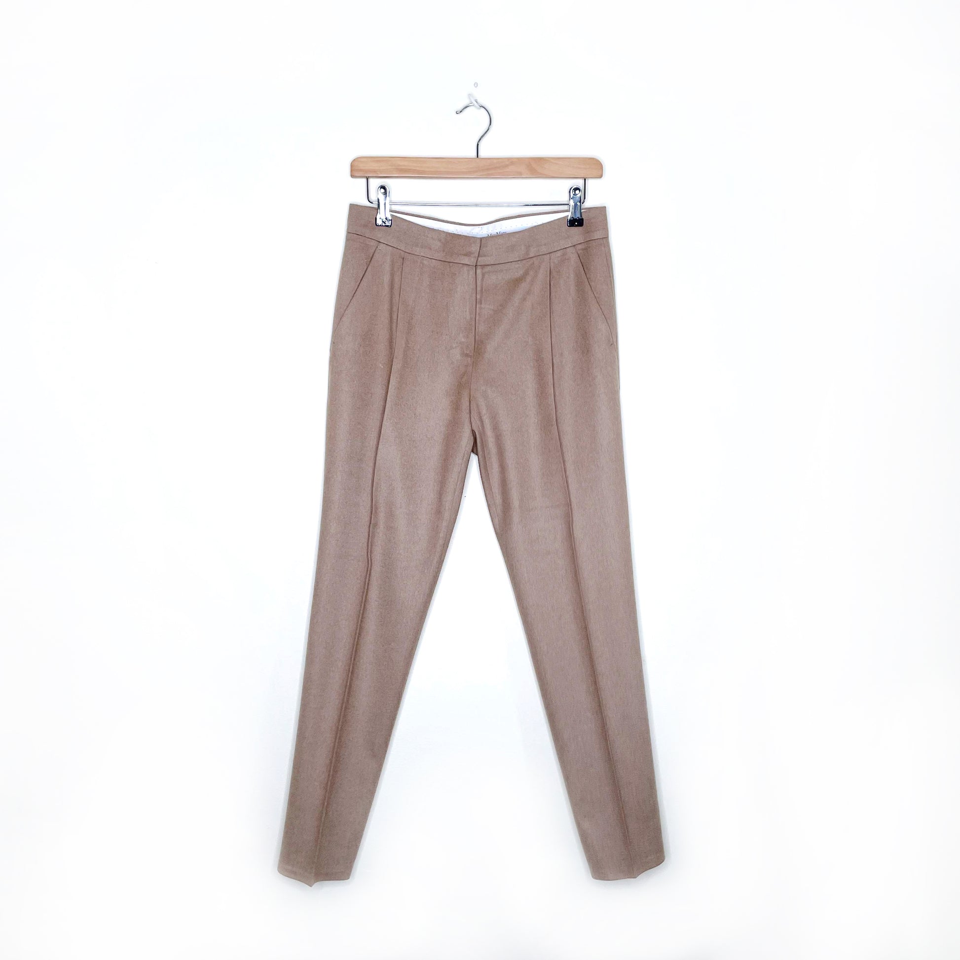 Item Description: Tapered camel hair trousers in camel tan. Mid-rise. Two-pocket styling. Pleats at front and back. Zip-fly. Tonal and gold-tone hardware. Tonal stitching. 100% camel hair