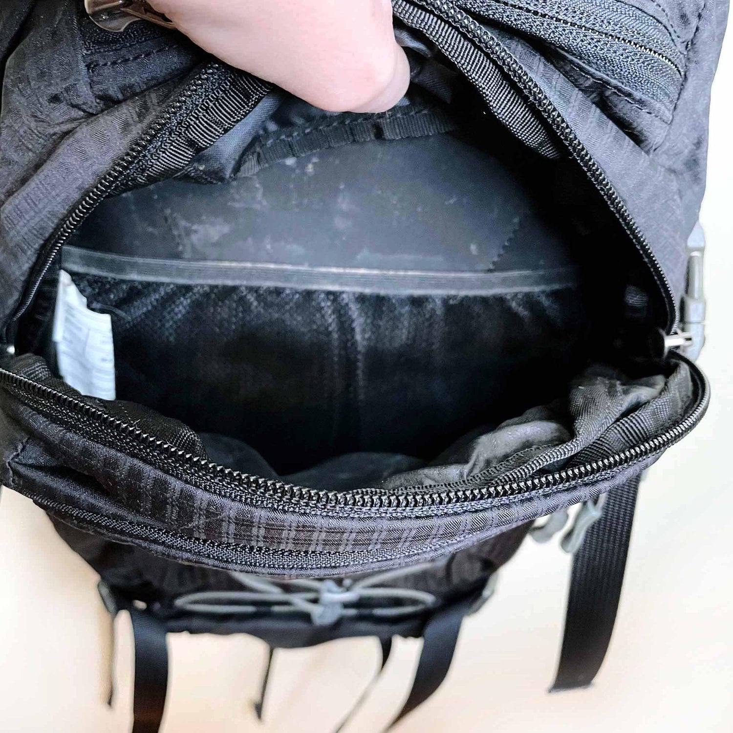 Item Description: A mountain bike bag that is also suitable for hiking and cross-country skiing. It comes with a Hydrapak reservoir that keeps the hydration tube in the pack while filling, while the mesh holster keeps the water in place while on the go. Made of two types of recycled polyester.