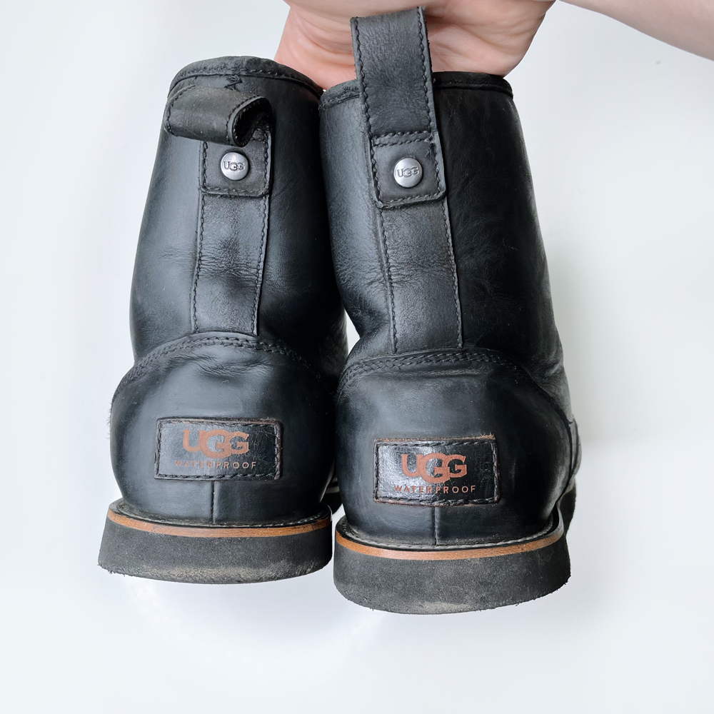 men's black ugg hannen TI sheepskin lace-up boots - size 11/11.5