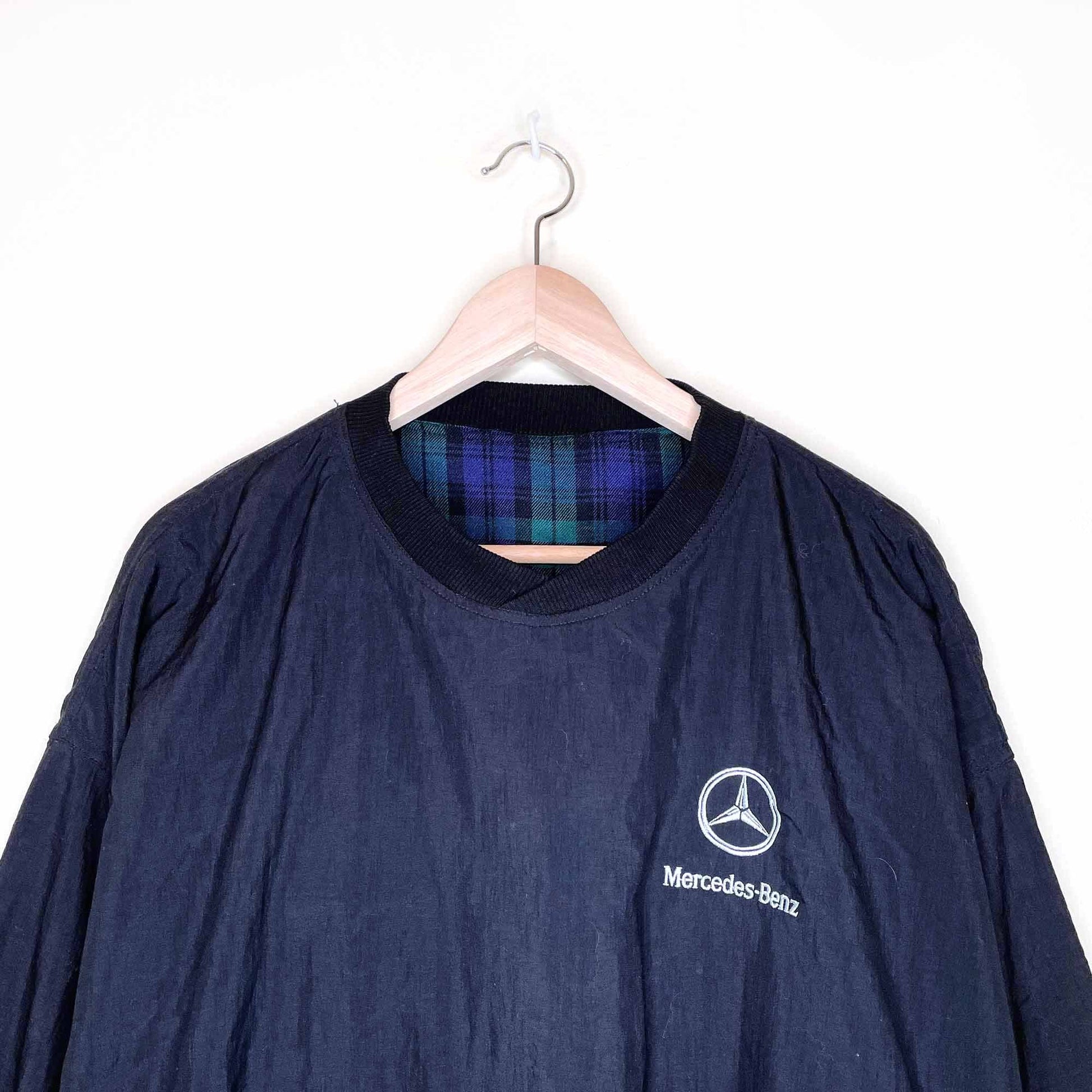 mercedes benz reversible plaid v-neck popover jacket - large