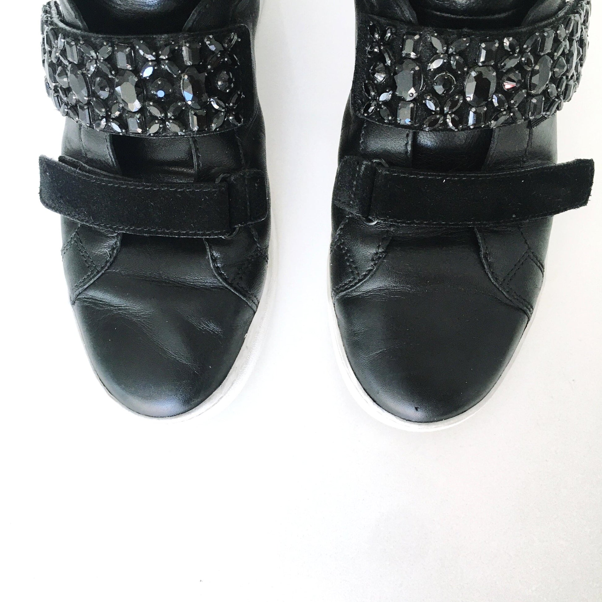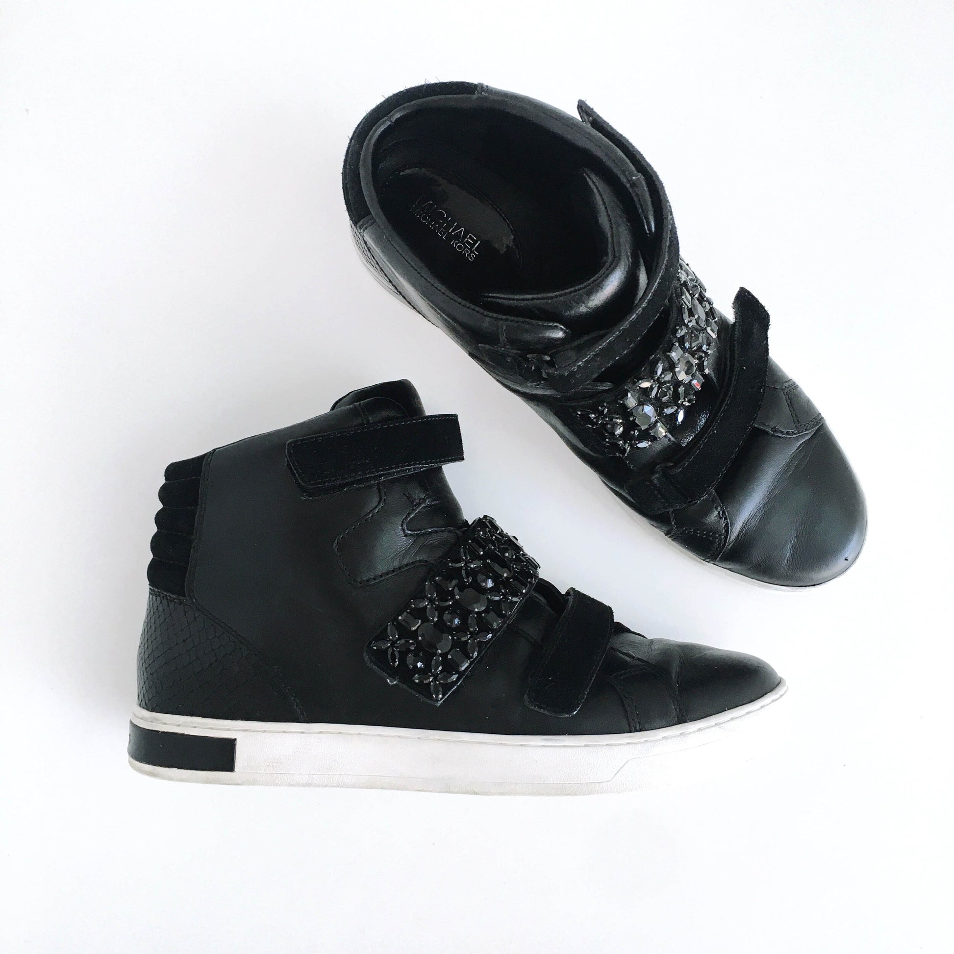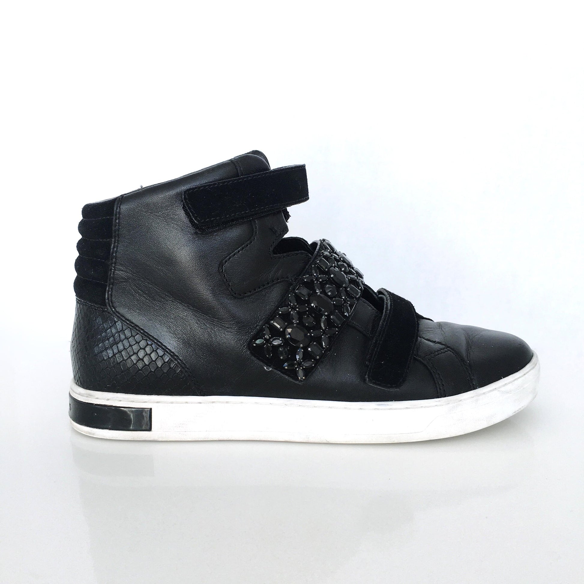 Item Description: Fastened with thick velcro straps and bejewelled with subtle bling, the Randi high top sneakers from MK add sophistication and style to the modern day sneaker. 100% leather upper.