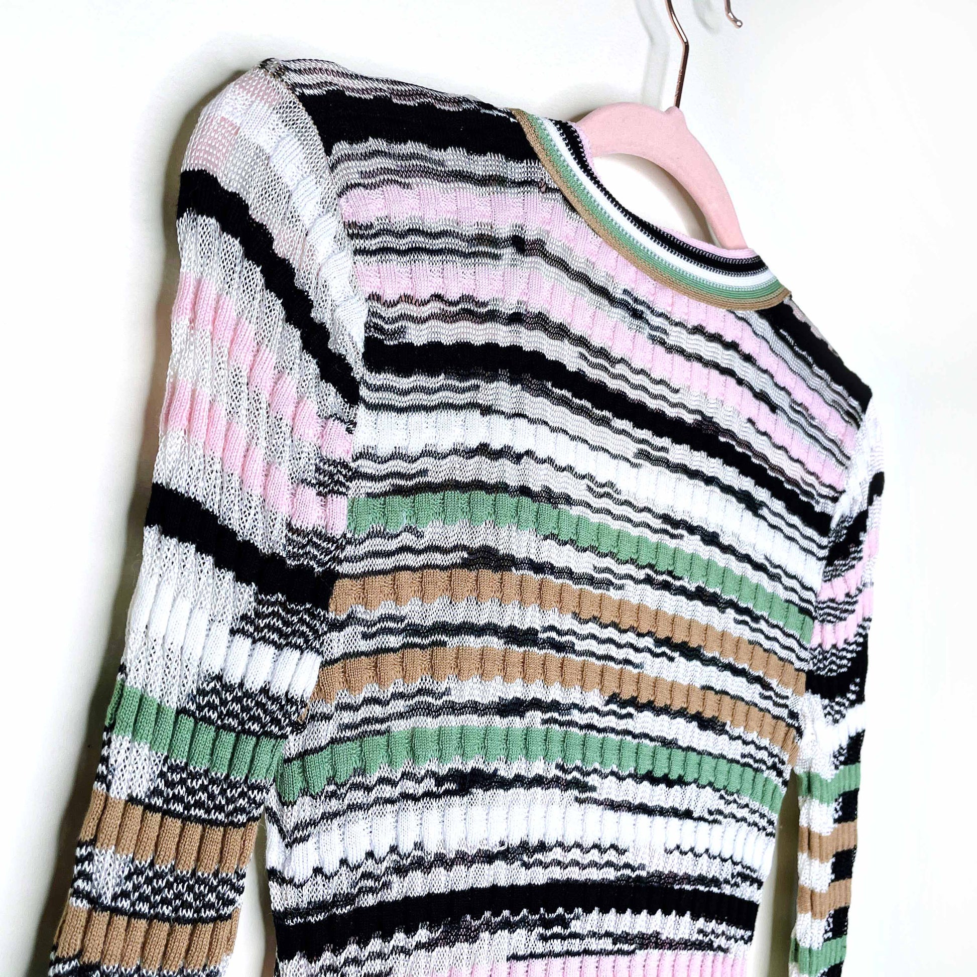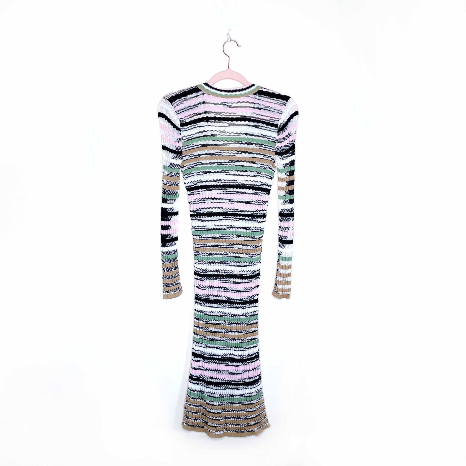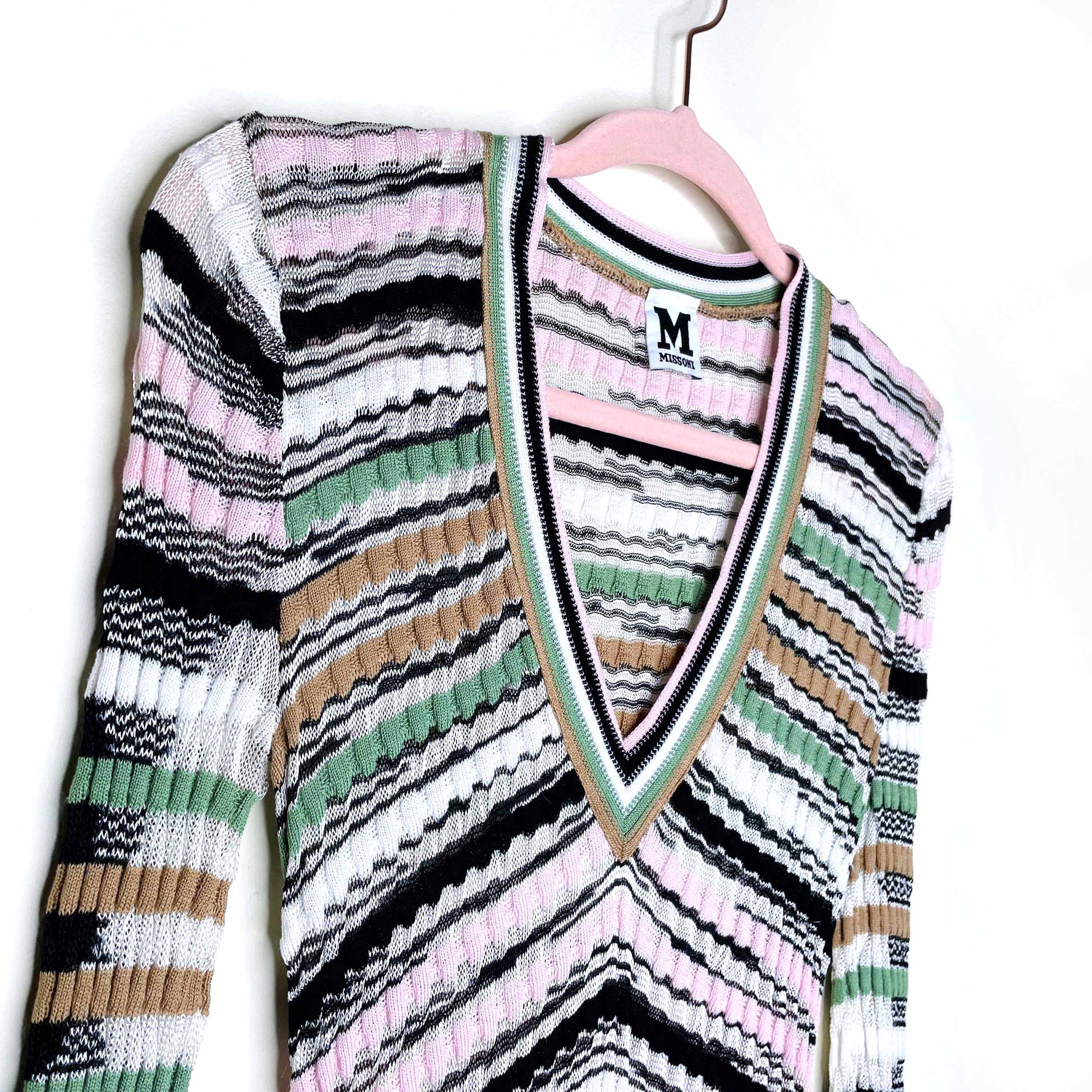missoni striped v-neck long sleeve knit midi dress - size 4