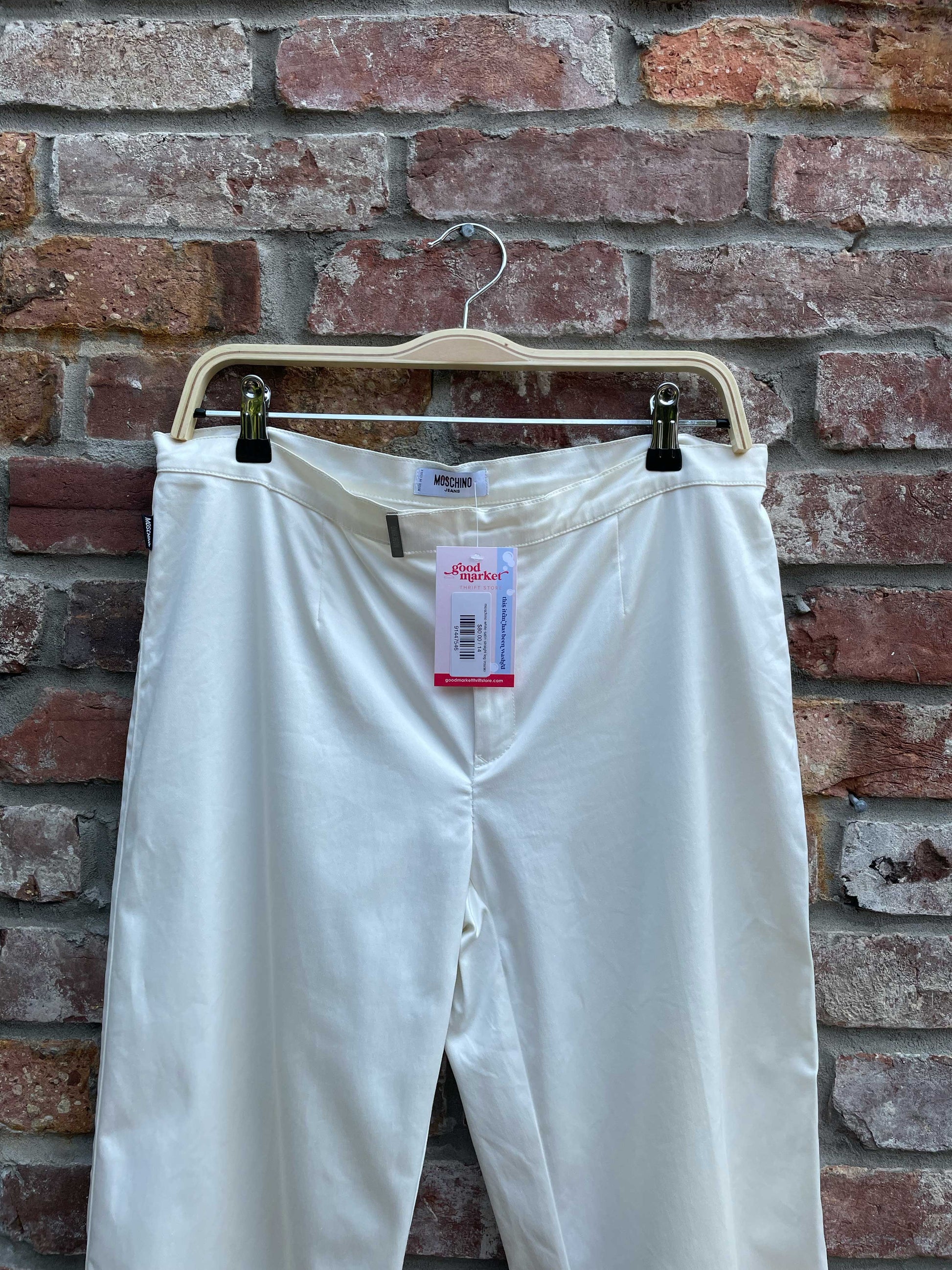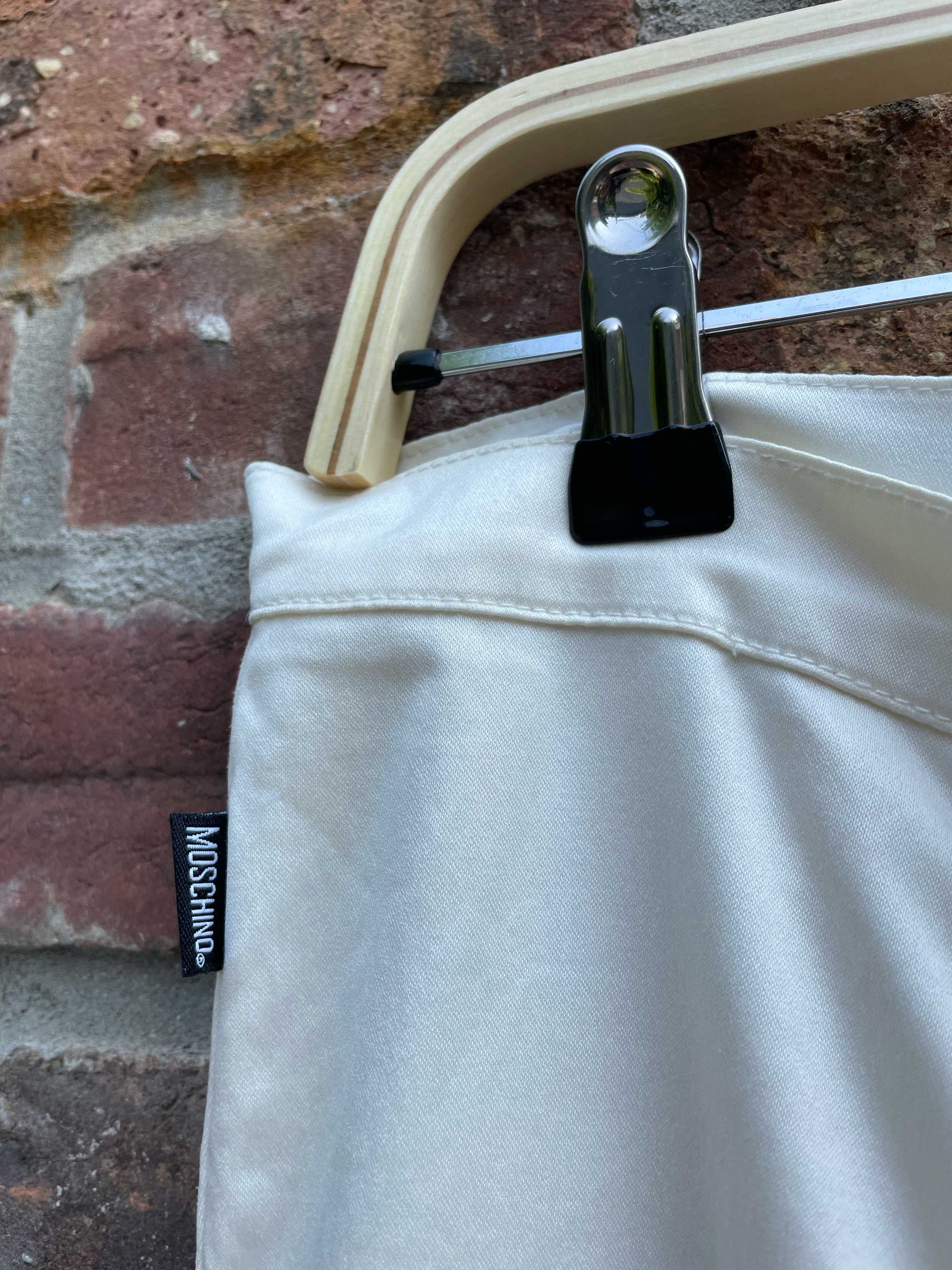 moschino white satin straight leg trouser