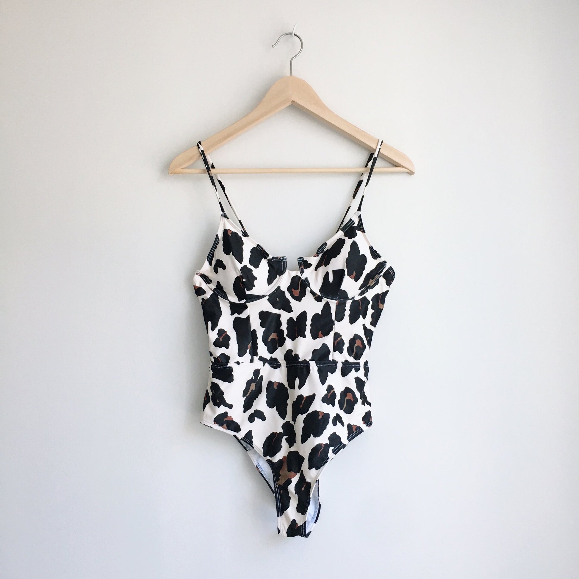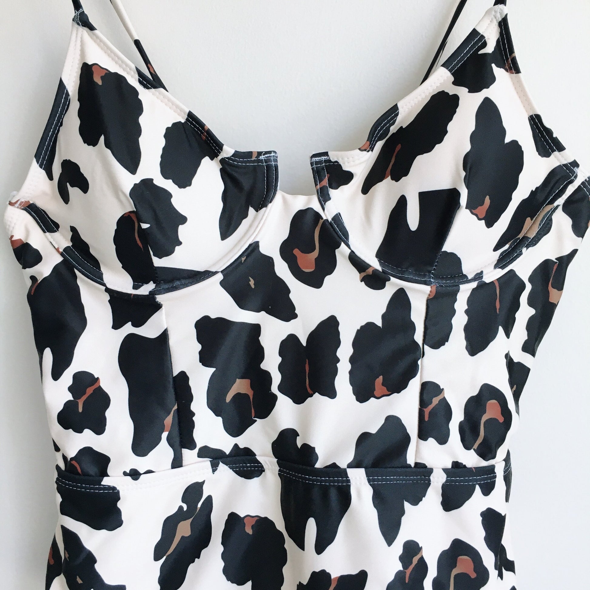 Item Description: This stunning leopard one piece swim suit features a trendy wired bra front with removable pads, high hips and a cheeky backside.