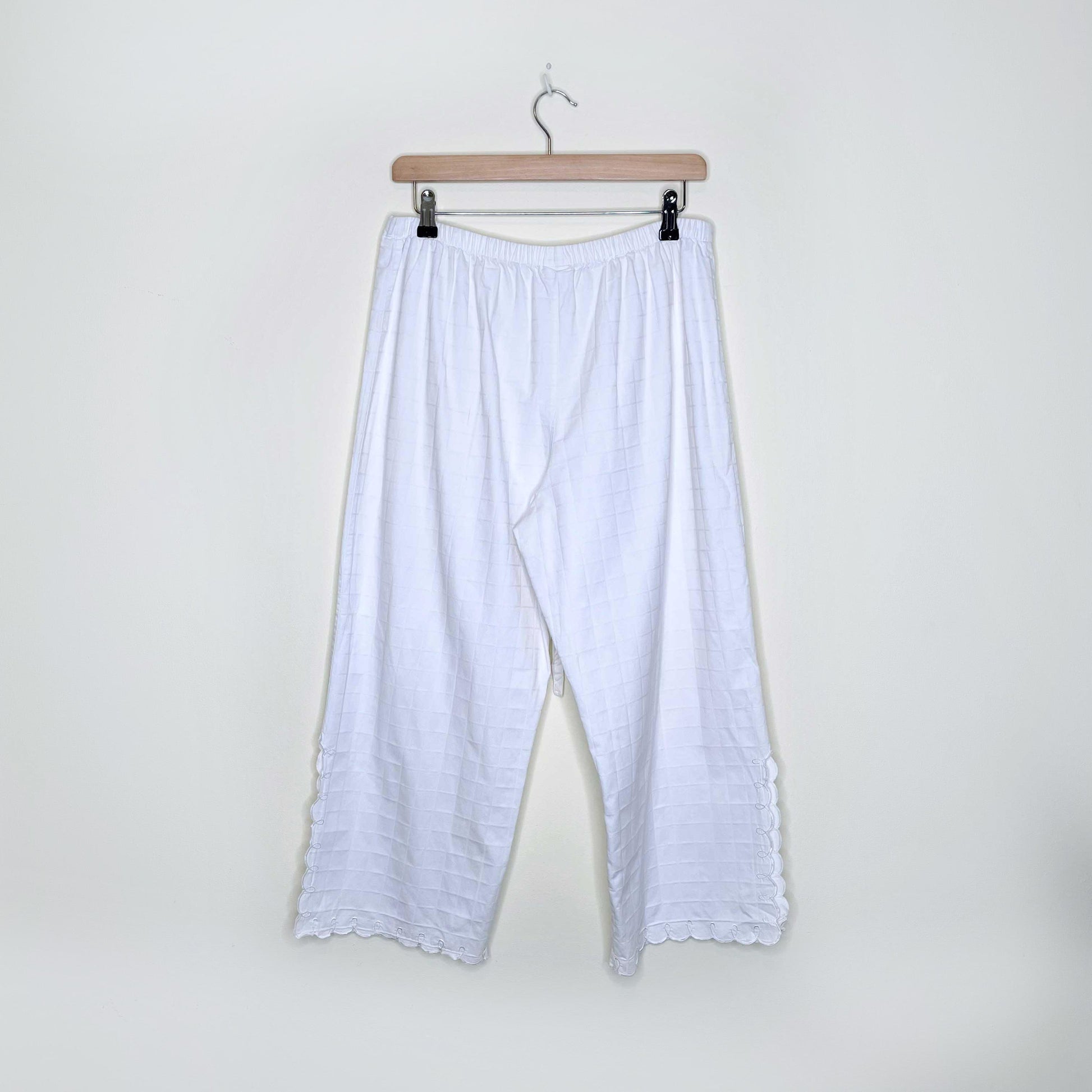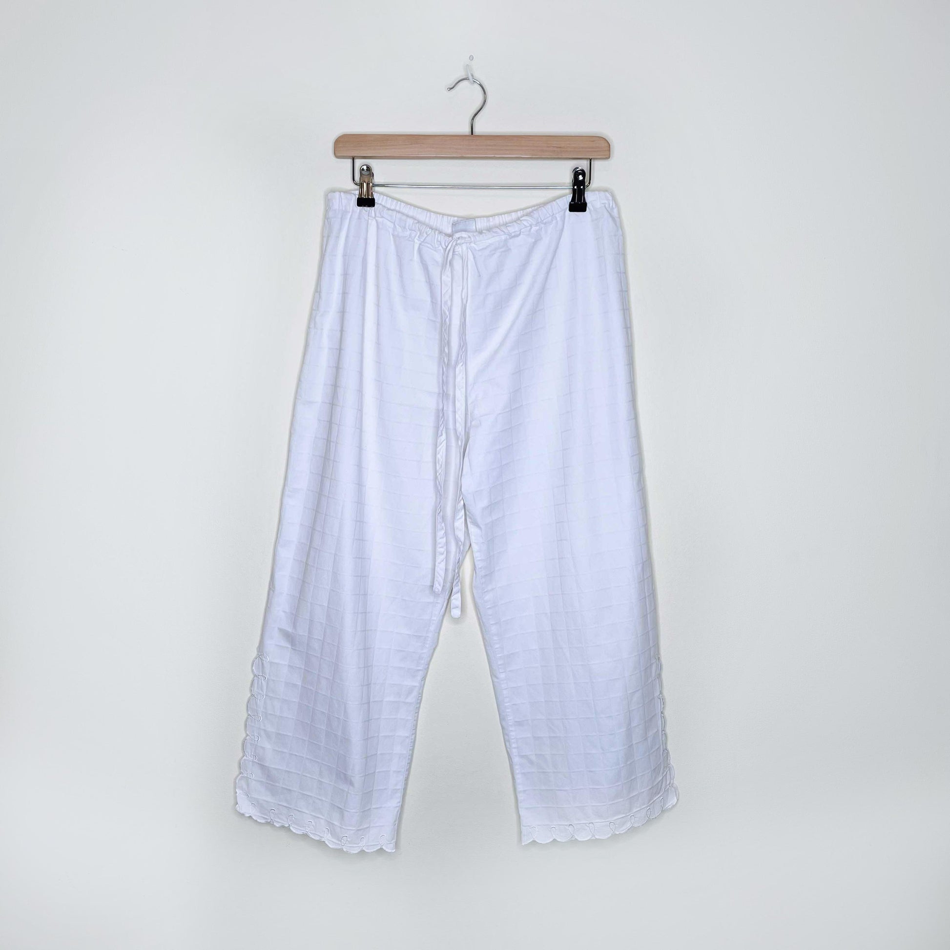 Item Description: Stay cool in this Natori cotton pajama set - embroidered trim, subtle windowpane pattern and cropped silhouette for warm nights. 100% cotton