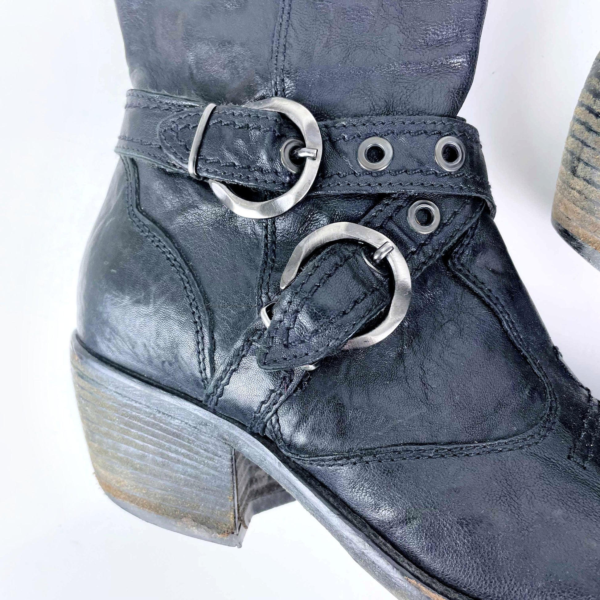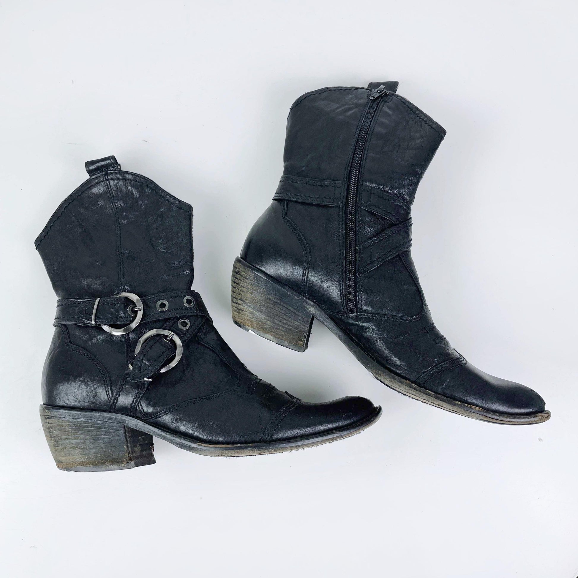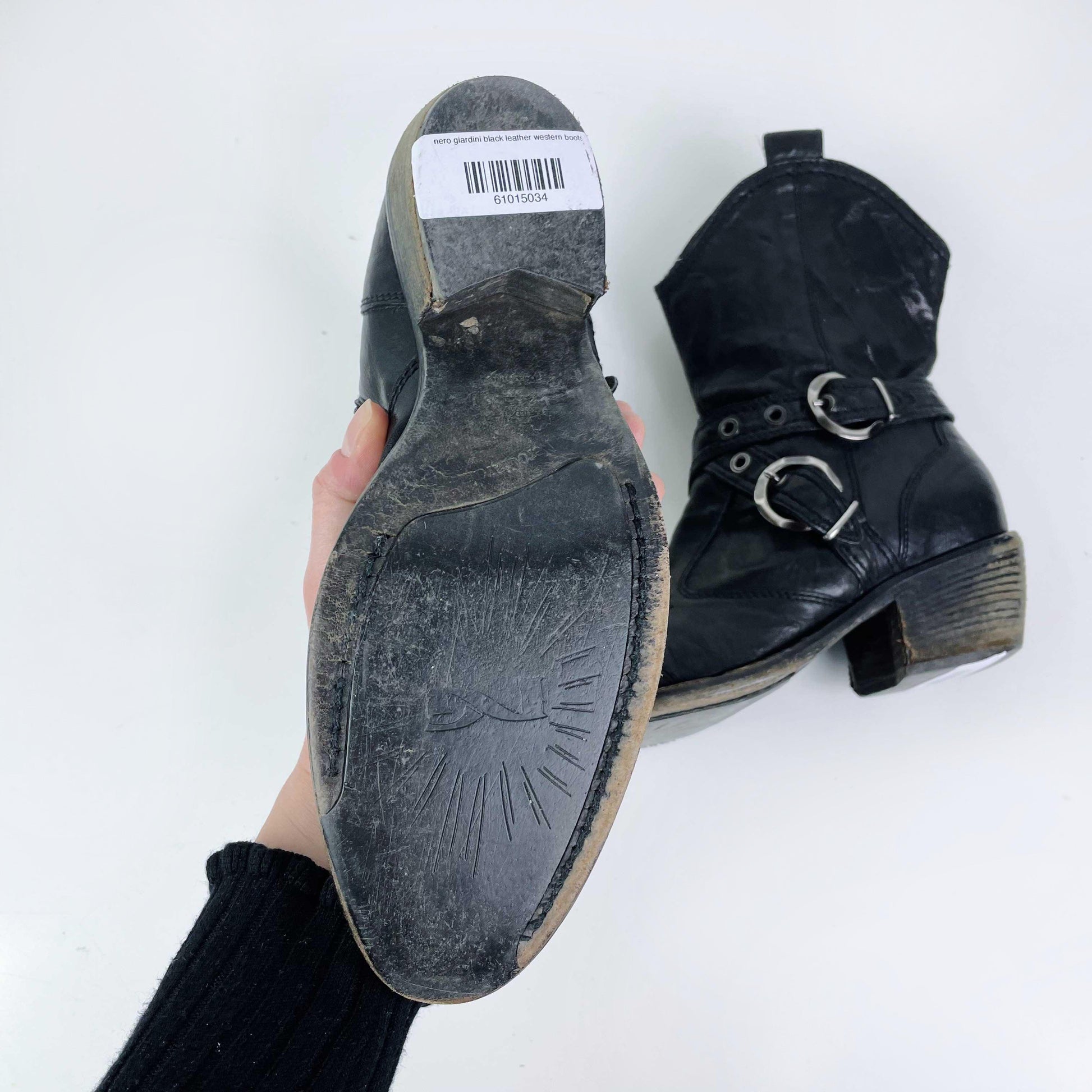 Item description: These western inspired festival boots from Nero Giardini feature a soft leather with wrap around ankle buckles and a size zip closure.
