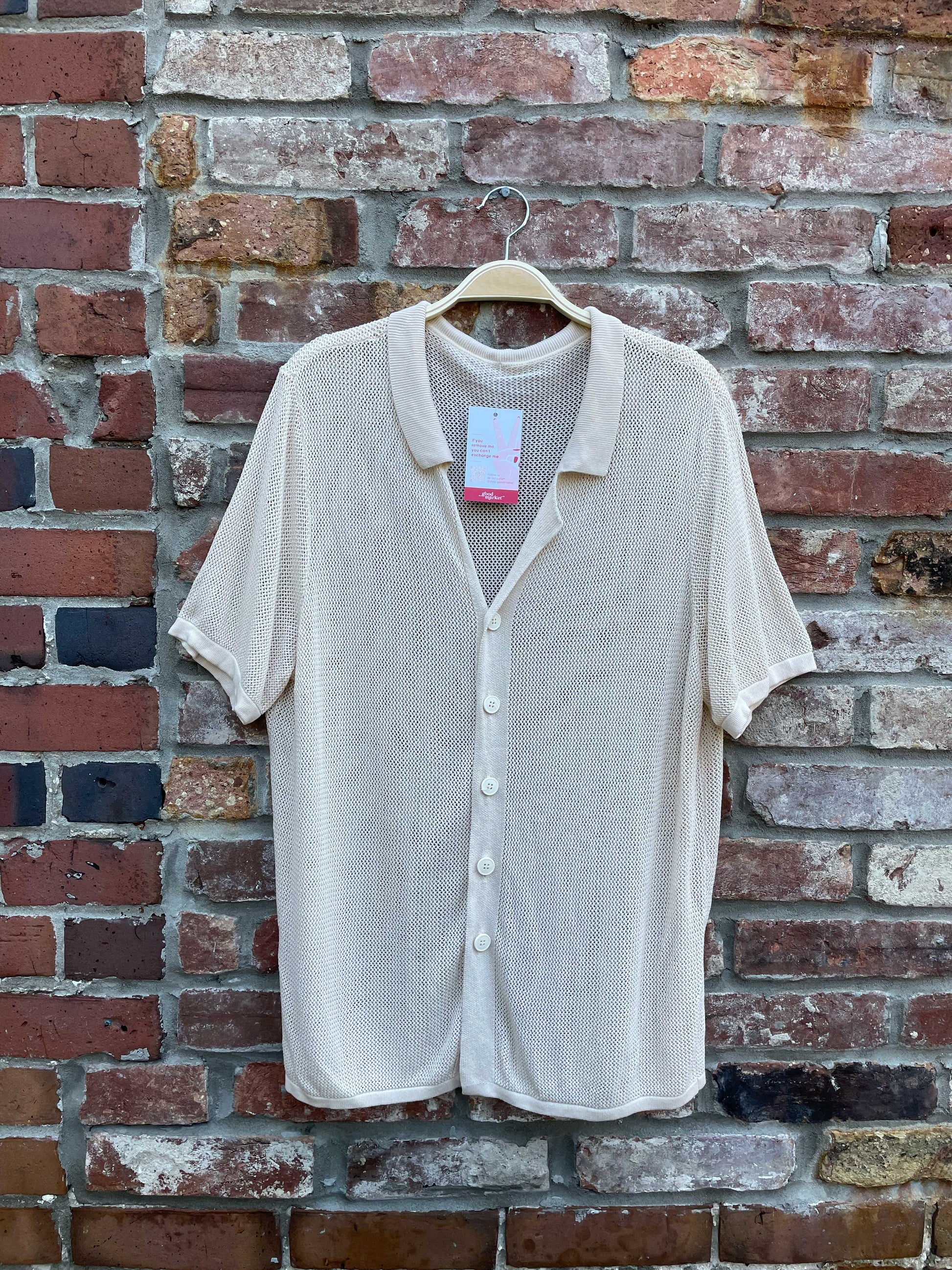 neutral crochet knit short sleeve polo cardigan