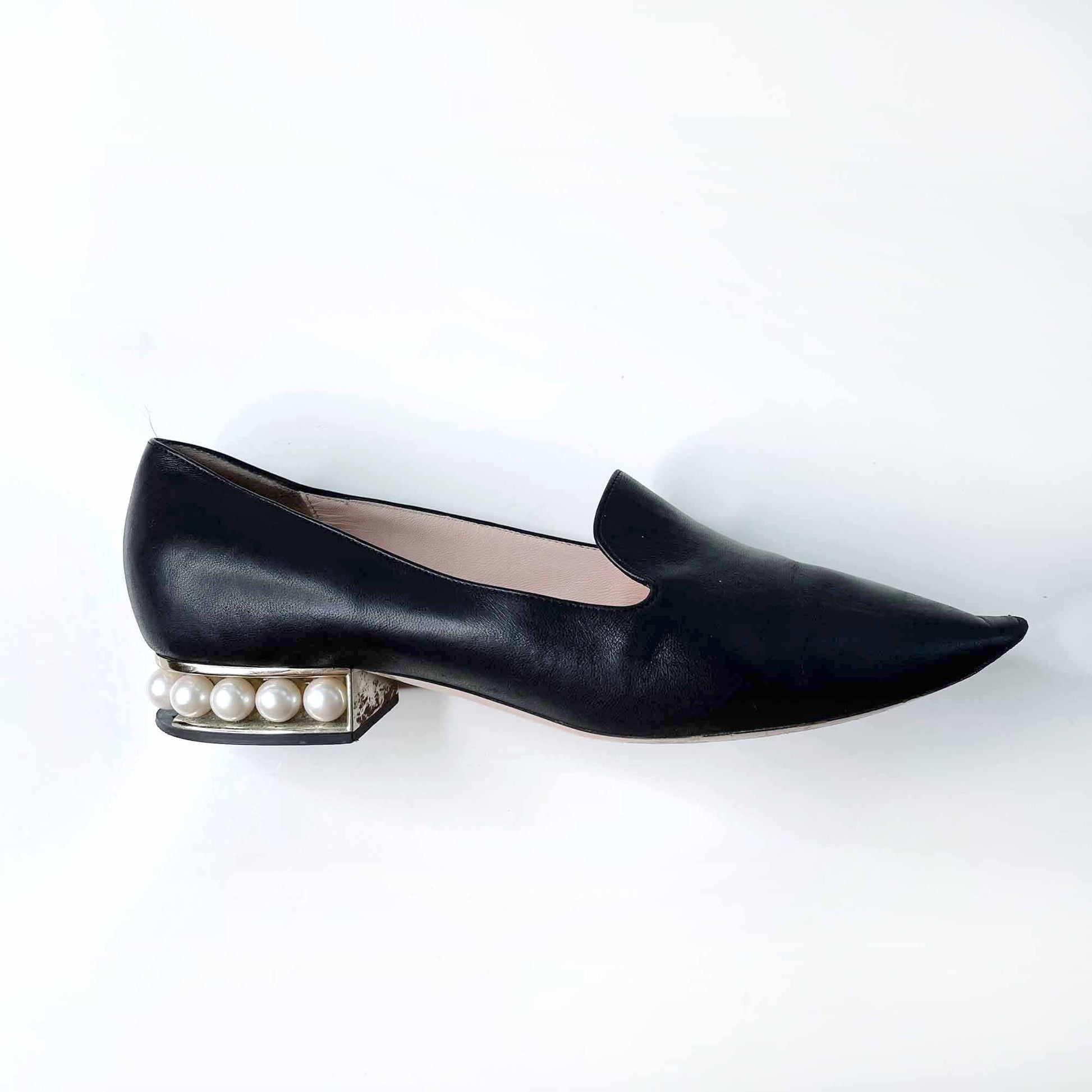 nicholas kirkwood black leather pearl casati loafers - size 35