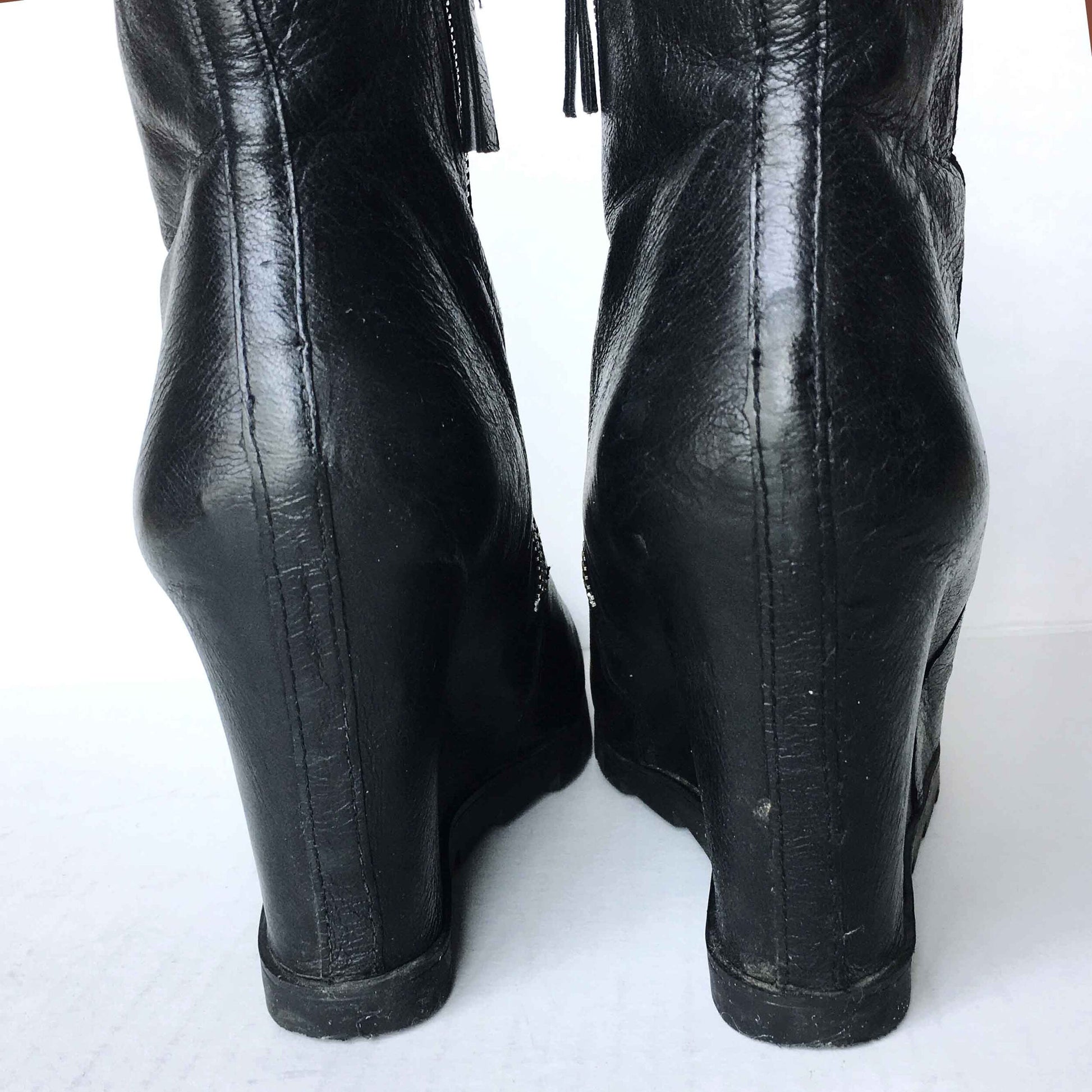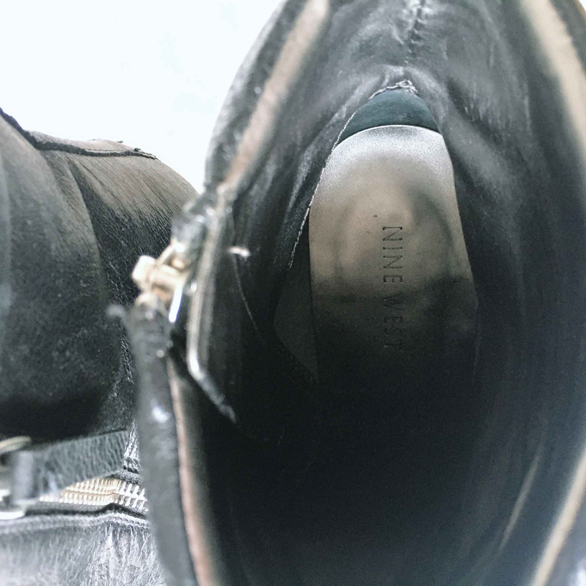Item Description: These leather ‘Pink Top’ wedge booties from Nine West are unreal quality - thick but supple leather, toothed rubber sole for grip and walking, and a comfortable heel height. Side zipper closure, silver interior. 100% leather upper