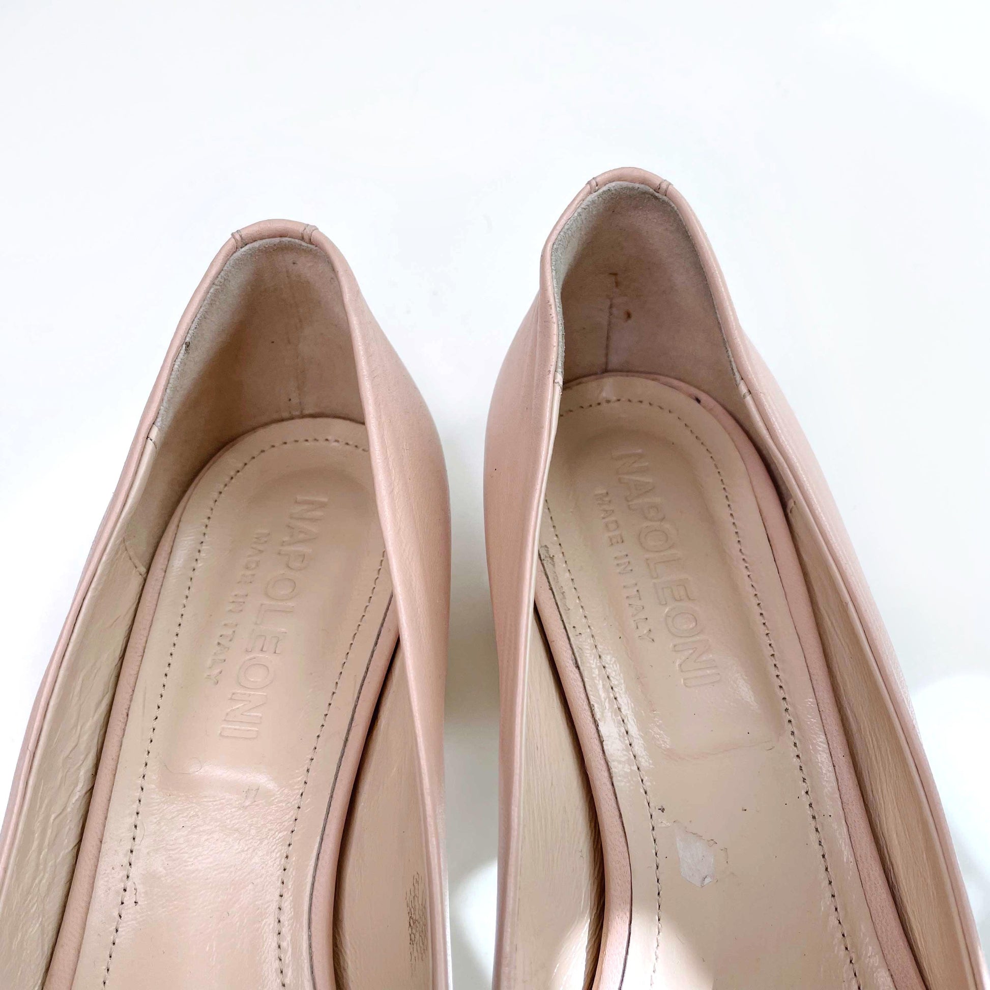 Item Description: These shoes were made for walking...all day. These soft leather Napoleoni day heels feature a thick, low heel, squared off toe with chain link feature. Easy to slip on and off. 100% leather upper.