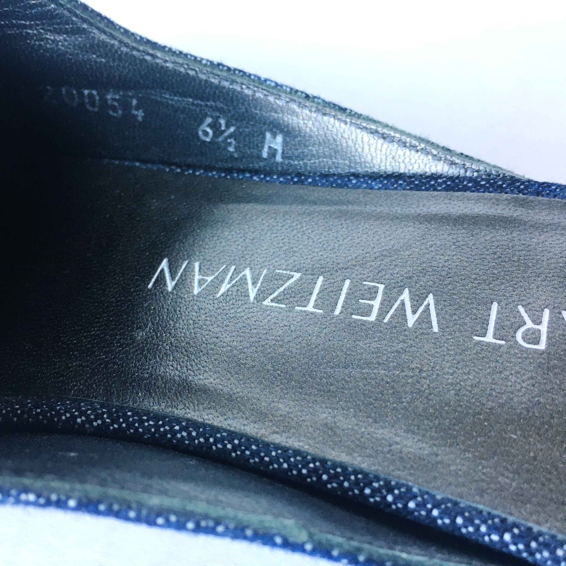 Item Description: Slip into something a little more comfortable, like the Mulearky mules from Stuart Weitzman. Fabric upper, leather sole, antique denim finish.