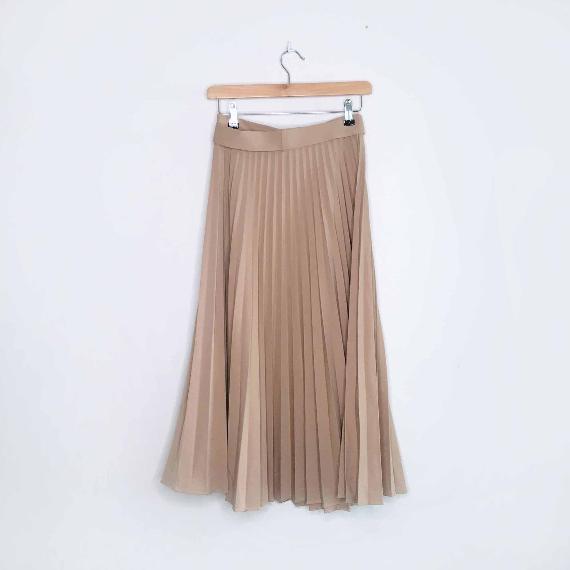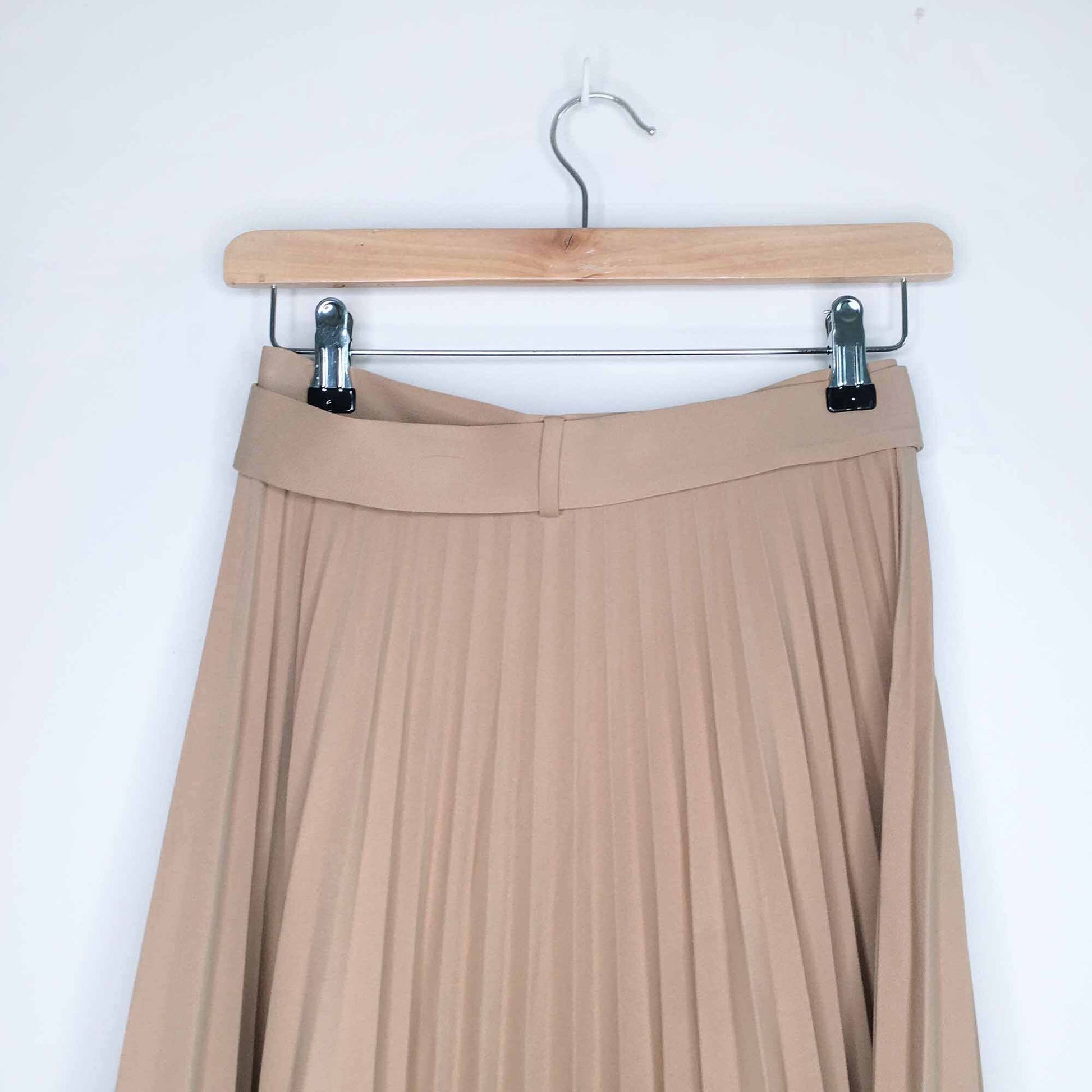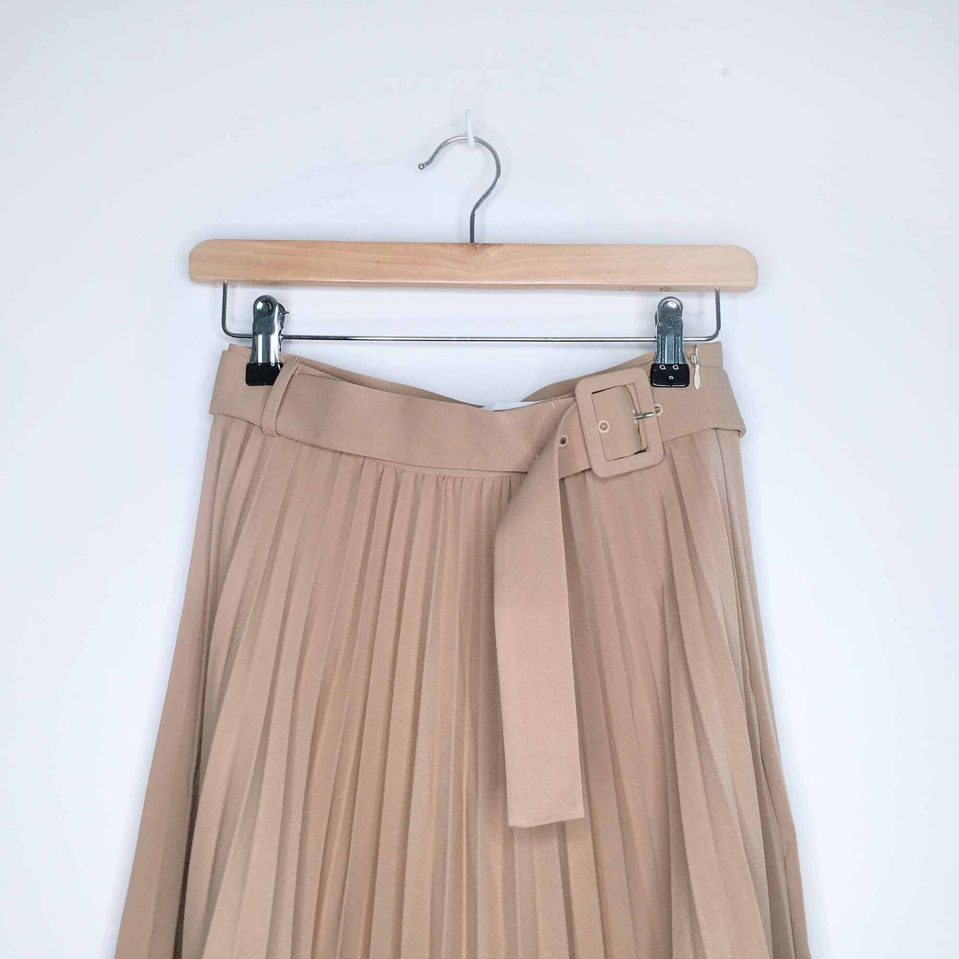 NWOT Zara pleated belted midi skirt in sand - size xs