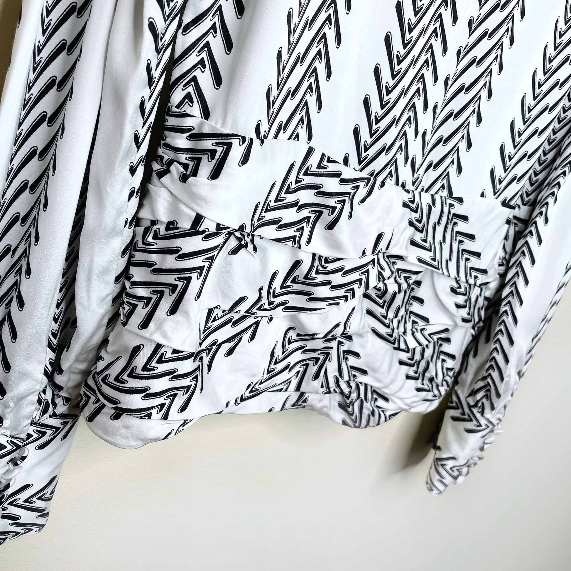 Condition: NWT 8/10 - a tear on the side zipper was repaired (see photo) and there were two rips on one sleeve that were repaired - in an inconspicuous spot