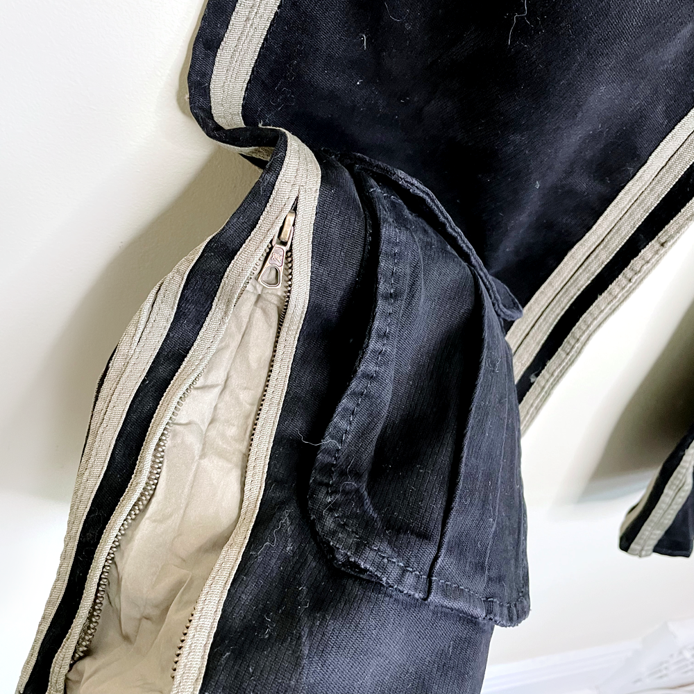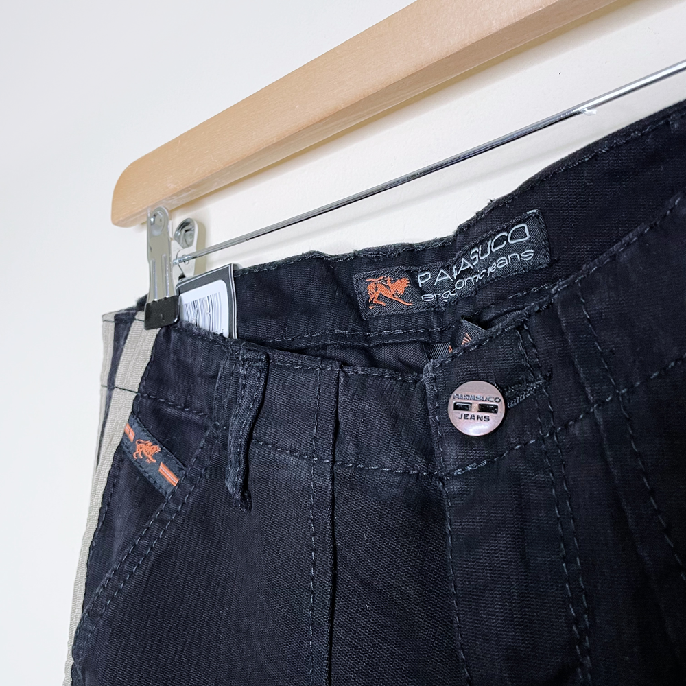 nwt deadstock parasuco black miltary stripe wide leg low rise cargo pants
