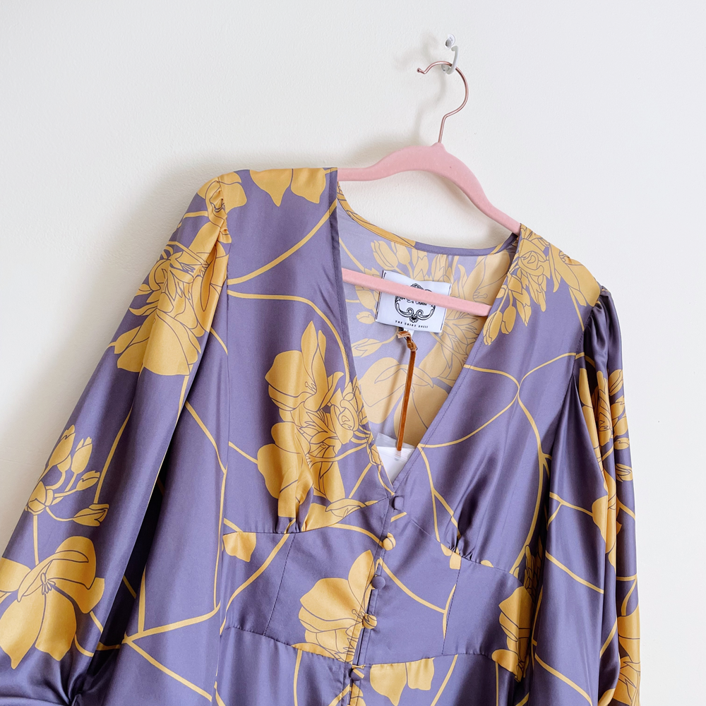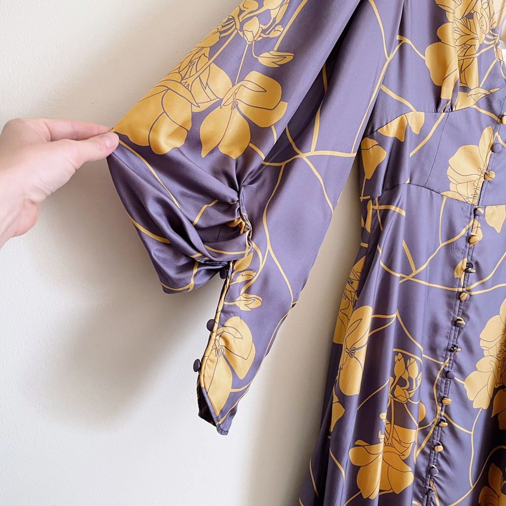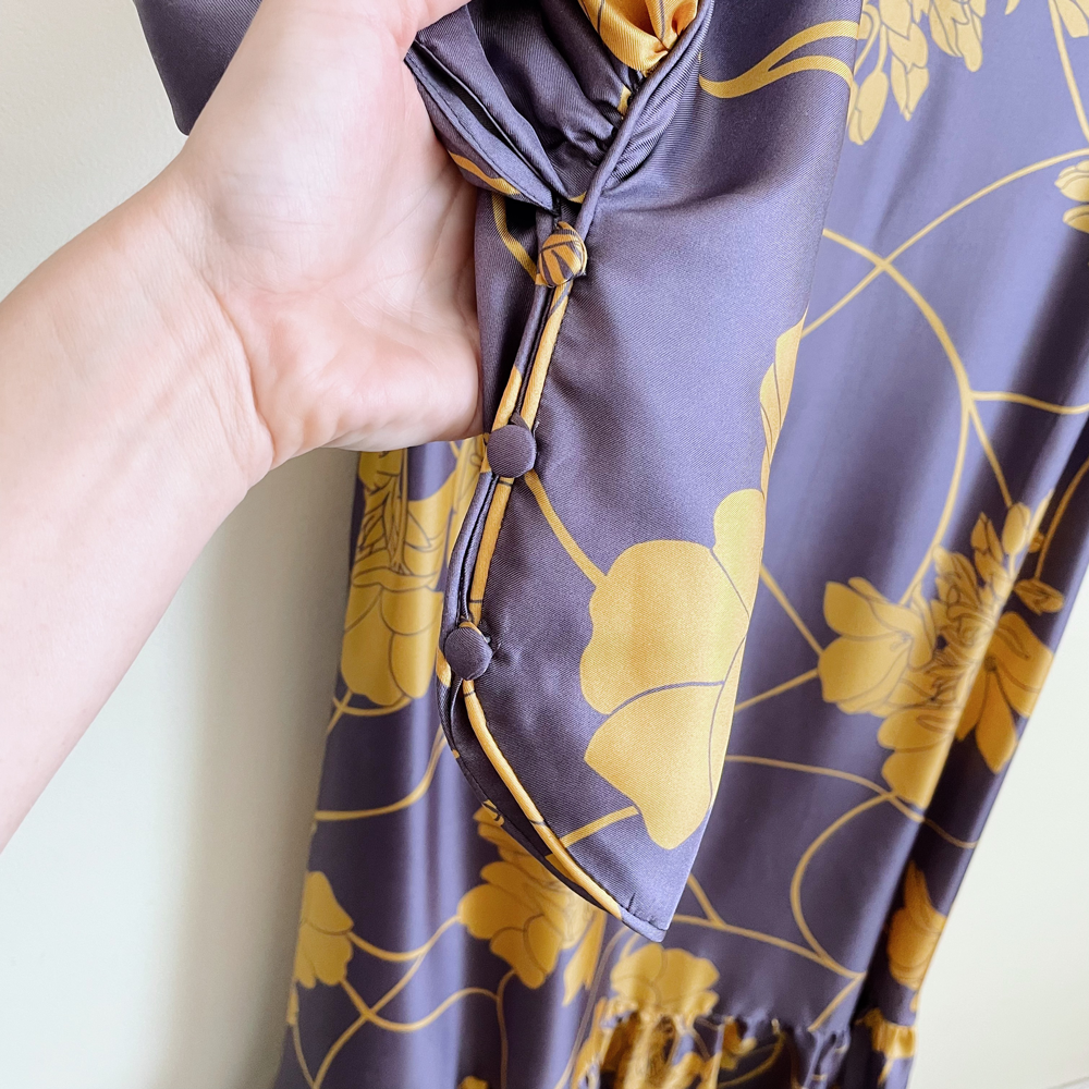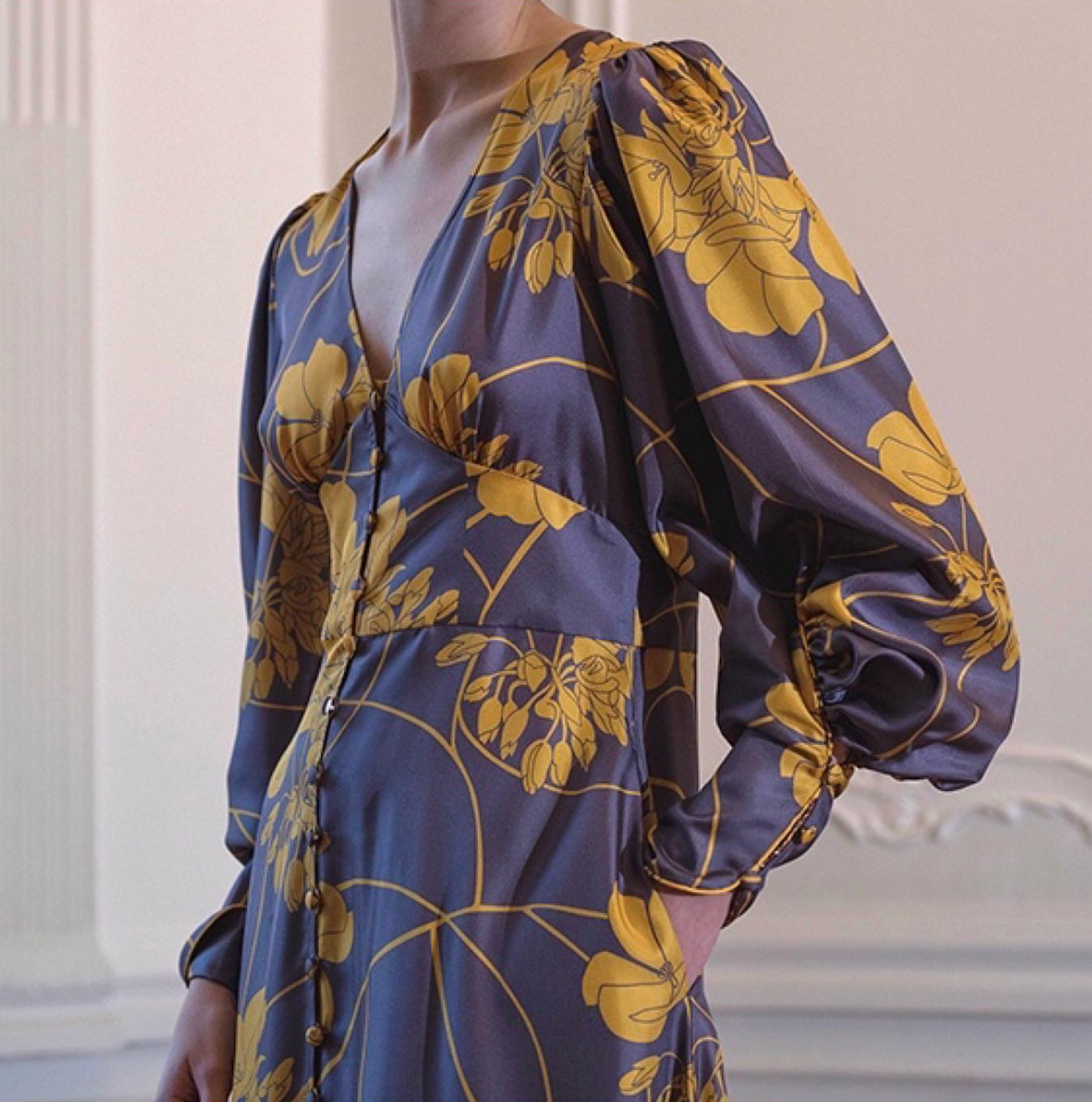 Item Description: "Politeness costs nothing and gains everything." This shirt dress from Evi Grintela features a silk twill flower adorned fabric with covered button front closure, balloon sleeves and an elegant, elongated cuff. Tragically feminine, mixed with a bit of summer boho. 100% silk