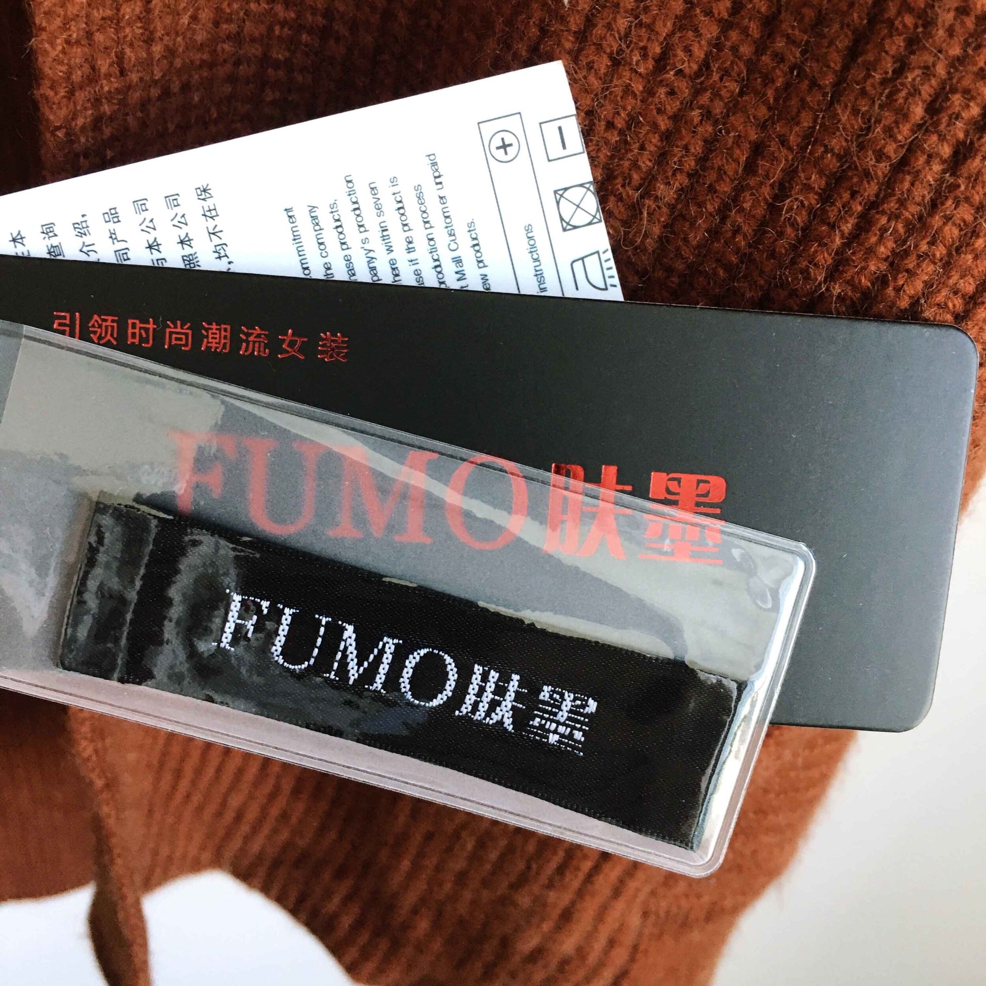 Item Description: This festive rust coloured open duster cardigan from FUMO features drop shoulders, with a panelled ribbed texture. Can't read the tag but it feels plush like wool, but very soft so might have angora in there.