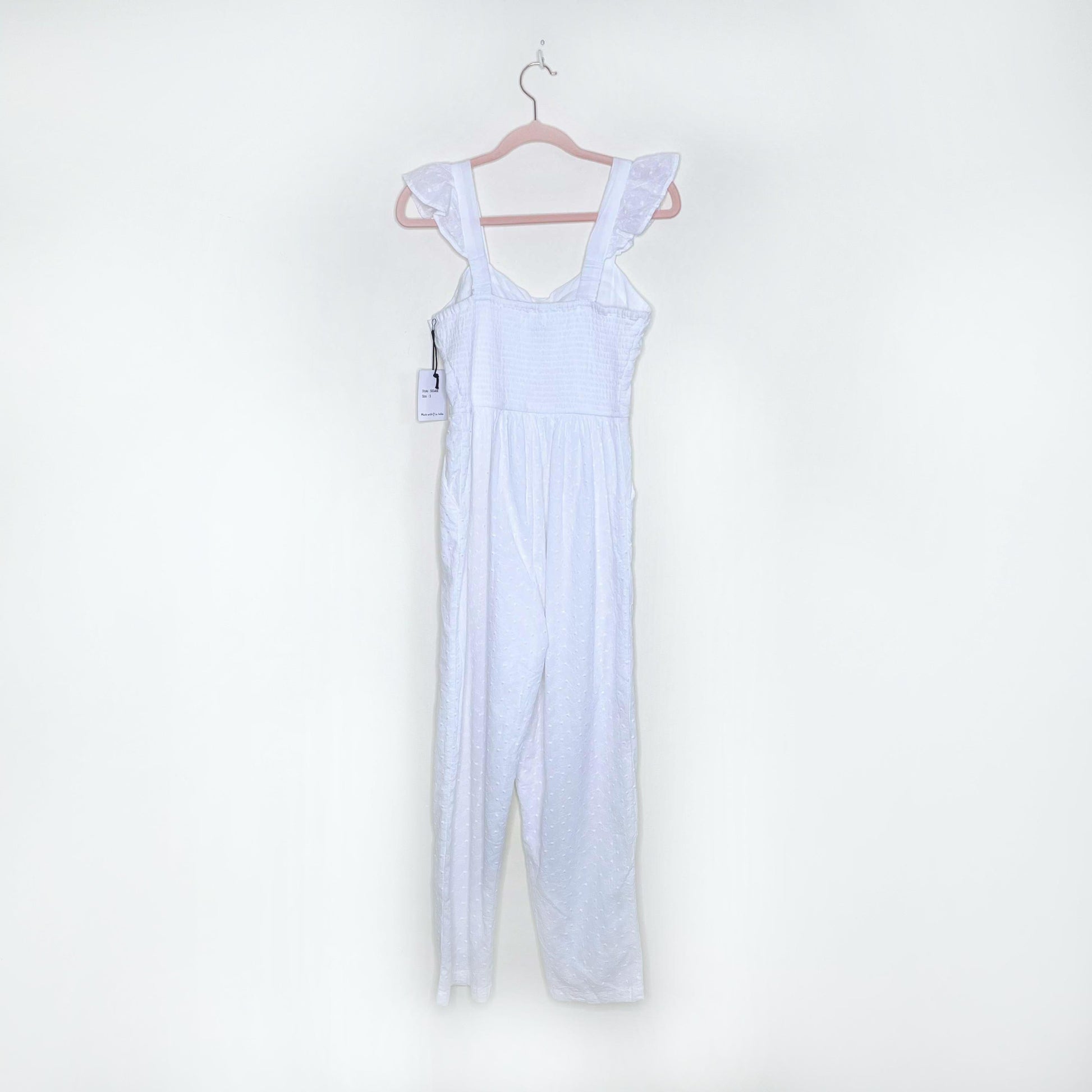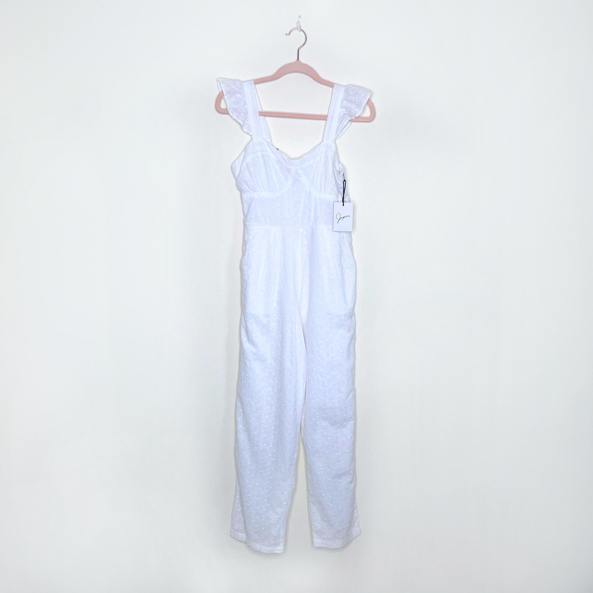 nwt japna white eyelet ruffle sleeve jumpsuit - size small